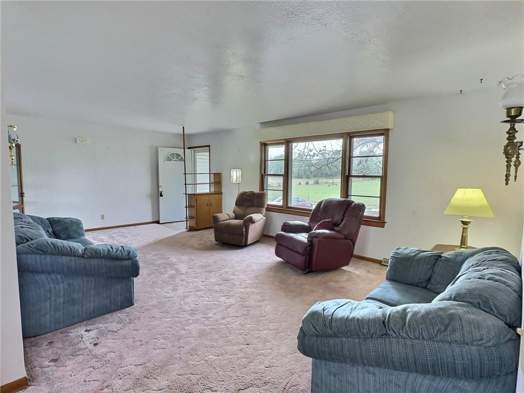 Living room featuring carpet flooring and baseboards