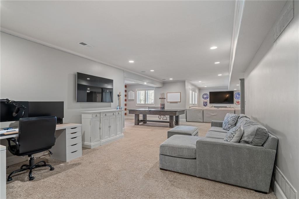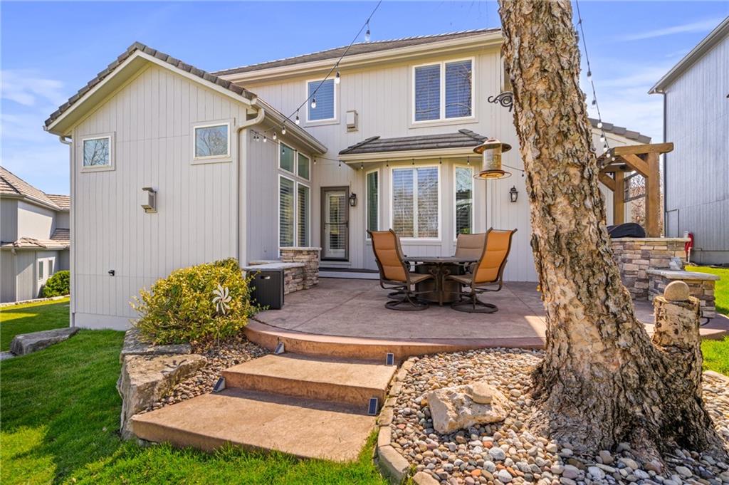 Welcome to this stunning 2-story home in highly sought after Woodland Reserve community in Lenexa! From the moment you arrive, the WOW factor is undeniable. This home has been beautifully updated and meticulously maintained with impressive attention to detail throughout. Step inside to discover gleaming hardwood floors that flow through the main level creating a warm and inviting atmosphere. The gorgeous kitchen is truly the heart of the home featuring modern finishes, ample cabinetry and granite counters w/generous space for cooking, gathering and entertaining. Work from home? Enjoy a quiet, private main level home office, perfect for productivity without distractions. After a long day, retreat to the spacious primary suite complete with a luxuriously updated primary bath designed for relaxation, offering stylish finishes and a spa-like feel. This home features 3 additional bedrooms providing comfort and flexibility for family and guests. The finished lower level is an entertainer's dream boasting an amazing bar area and plenty of space for movie nights, game days or hosting guests. Step outside to a professionally landscaped yard that enhances curb appeal and creates a beautiful outdoor setting. Enjoy time on the stamped concrete patio w/built in grill. The backyard sport court offers endless opportunities for recreation and fun. Car enthusiasts and eco-conscious buyers alike will appreciate the 3 car garage w/epoxy floors and EV charging power. Don't miss the built-in storage unit large enough to fit a golf cart (side of house). This exceptional home offers the perfect blend of luxury, functionality and standout features. (Did I mention plantation shutters throughout entire house?) Don't miss your chance to call this HOME!