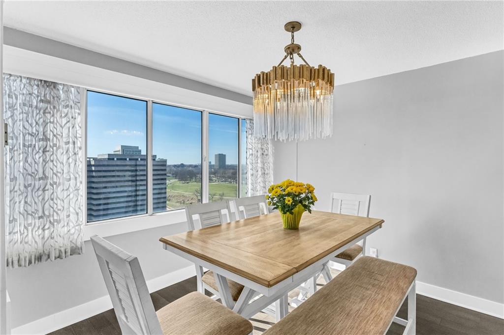 Resort-style living in the heart of KC's vibrant downtown neighborhood. Just steps outside your front door you'll enjoy all of the dining, shopping, and entertainment Crown Center, Crossroads, and Power and Light have to offer. The newly expanded KC Streetcar line connects you to River Market, UMKC, and the Country Club Plaza. At home, you will love the 24/7 concierge, Olympic salt water swimming pool, fitness center, tennis/pickleball courts, party rooms, and stunning rooftop terrace. This unit does have terrific outdoor space with its own private balcony! This perfectly updated condo features updated baths, kitchen with stainless appliances and solid surface counters. Every room has tons of light coming in. Secured garage parking spaces are available.