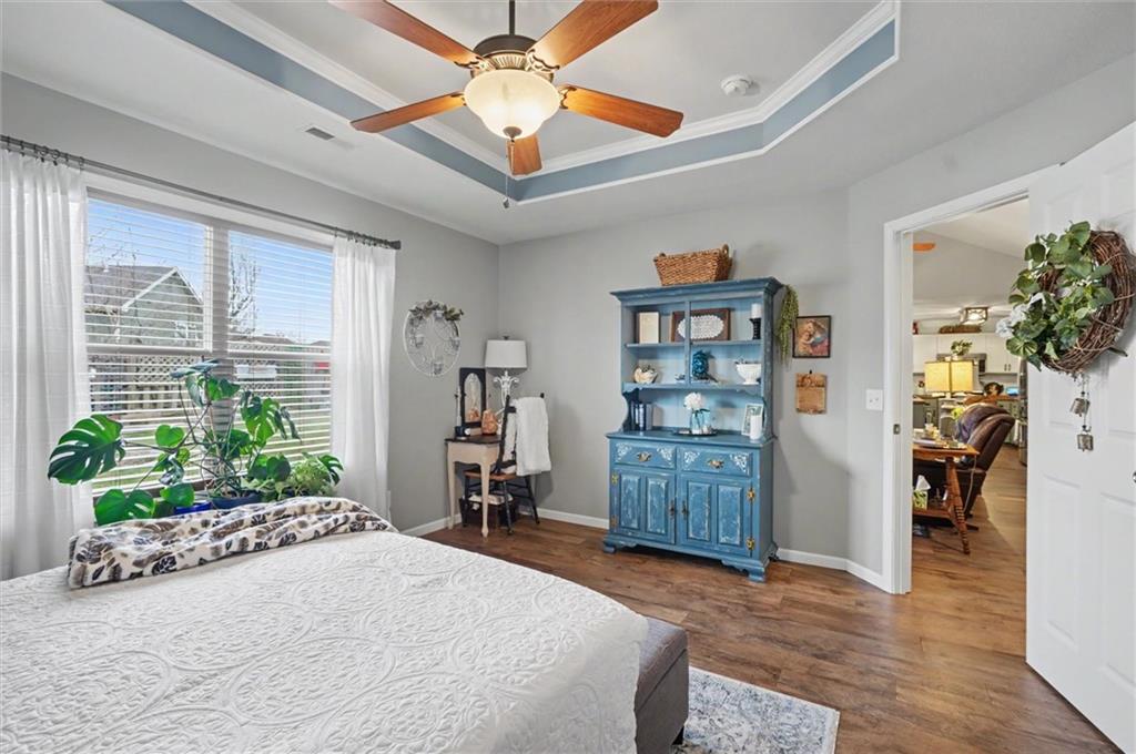 Welcome home to this beautifully maintained 3-bedroom, 2-bath ranch in Baldwin City’s Firetree Estates. Designed with ease and comfort in mind, the zero-entry layout offers seamless accessibility, while the spacious 3-car garage provides abundant room for vehicles, hobbies, and storage. Inside, you’ll find thoughtful custom touches throughout; from cabinetry to doors to lighting…adding warmth and character in every room. This home has been meticulously cared for and it shows, offering a move-in ready experience with timeless charm. Step outside and enjoy the carefully landscaped yard, filled with established perennials, mature trees, and shrubs that create a peaceful, inviting setting. The custom deck provides shade from the hot afternoon sun and the perfect setting to enjoy morning coffee or summer barbeques. Located in a quiet cul-de-sac with a nearby park, convenient access to schools, and quick routes to major highways, this home offers both tranquility and everyday practicality.