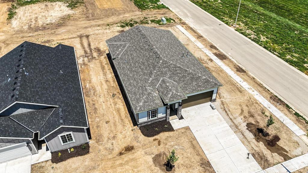 Welcome to this stunning new construction ranch home in Gardner, offering modern design, quality craftsmanship, and thoughtful upgrades throughout. Situated on a desirable corner lot in Lone Star Prairie, this home combines style, comfort, and convenience. Step inside to discover a spacious open-concept layout featuring a great room, kitchen, and dining area designed for seamless everyday living and entertaining. The gourmet kitchen is a true centerpiece, showcasing a gas cooktop, stainless steel appliances, a large island, and a walk-in pantry—perfect for both casual meals and hosting guests. This home offers 3 bedrooms and 2 full baths, including a well-appointed primary suite with a luxurious all-glass shower and tile surround for a spa-like experience. Elevated 8-foot doors throughout enhance the sense of space, while durable luxury vinyl plank flooring flows seamlessly across the home for both style and easy maintenance. Additional highlights include a garage door opener with remote and a full irrigation system to keep your yard looking its best.