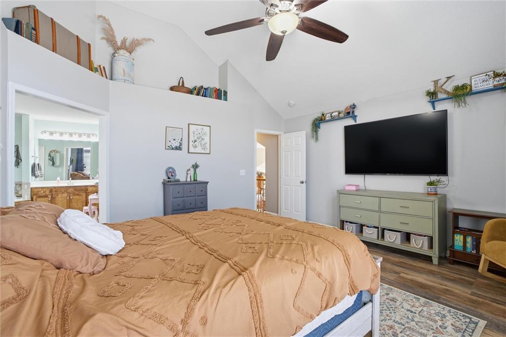 Tucked away on a quiet cul-de-sac in Ward Park Place, this beautifully maintained California split offers space, privacy, and standout features on an oversized lot backing to treed green space. Step inside to a light-filled great room with soaring vaulted ceilings and a cozy fireplace that creates a warm, inviting focal point. The kitchen features granite countertops, hardwood flooring, ample cabinet space, and a bright dining area. The spacious primary suite is set on its own private level, offering vaulted ceilings, lots of natural light, a large walk-in closet, and a spa-like bathroom with double vanities, a whirlpool tub, and a separate walk-in shower. Additional bedrooms are generously sized, and the finished lower-level family room provides flexible space for a second living area, a 4th bedroom, and full bathroom. The sub-basement could be used for storage or finish it for another living space. One of the standout features of this home is the installed 13.6kWh solar panel system, offering significantly reduced utility costs and long-term energy efficiency, and is still under warranty, an incredible value already in place for the next owner. Make this home yours today!