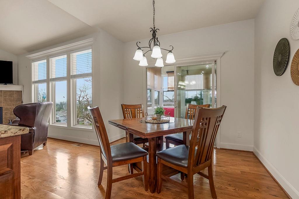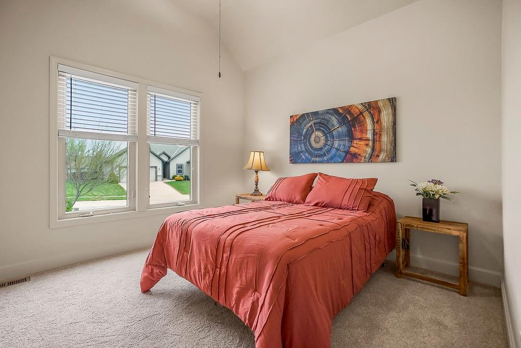 Stunning 4 bedroom, 3 bath reverse 1.5 story nestled on a cul-de-sac, offering a walk-out lower level to a fully fenced backyard. This meticulously maintained home features fresh paint inside and out, new carpet in bedrooms and stairs and newly landscaped grounds — truly move-in ready. The thoughtful layout places the primary suite and a second bedroom and full bath on the main floor, while the lower level offers a second living area, two additional bedrooms, and a third full bath — just the right amount of space for everyone. The open floor plan is packed with modern features and designed for comfortable living and entertaining. At the heart of the home, the kitchen, dining area, and great room flow seamlessly together, anchored by a cozy gas fireplace. The kitchen showcases custom cabinetry, granite countertops, a large island, and a pantry for ample storage. A wall of windows floods the great room with natural light and frames beautiful views of the backyard. Step into the sunroom, an additional 110 sq feet, is just off the dining area — the perfect spot for your morning coffee or evening wind-down, with more serene backyard views. The lower level recreational room walks out to a patio and the fenced backyard, and the property extends beyond the fenced area for added space. Conveniently located near highways, retail, dining, and entertainment — this home truly has it all!