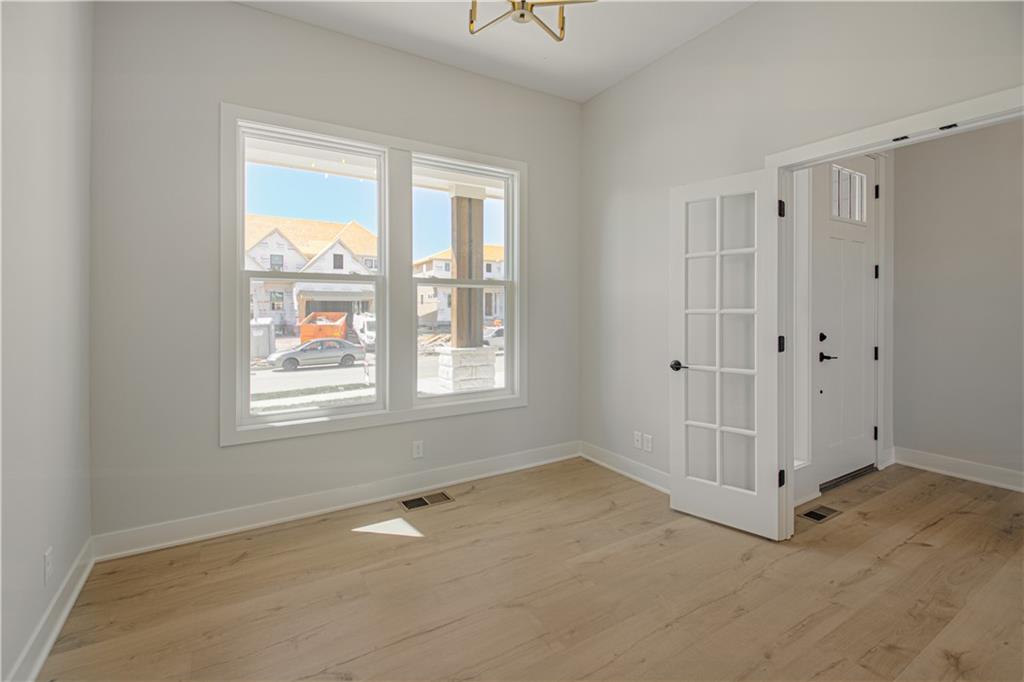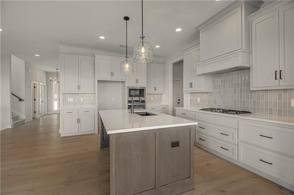 Move-in ready and beautifully designed, The Inglenook by Inspired Homes showcases a striking Craftsman-style exterior on a spacious, flat homesite—perfect for relaxing evenings or hosting BBQs on covered patio. Inside, you’ll find a thoughtfully designed layout with all the spaces you’ve been searching for. Just off the entry, a private home office with French glass doors and a walk-in closet offers both function and flexibility. The main floor features soaring 10-foot ceilings and oversized picture windows that fill the home with natural light. The kitchen is a true centerpiece, complete with high-end finishes including quartz countertops, a deluxe wood hood, built-in appliances with a gas cooktop, upgraded lighting, and under-cabinet illumination. An oversized walk-in pantry provides ample storage, and the kitchen flows seamlessly into the spacious great room, highlighted by custom built-ins, floating shelves, and a stunning stone fireplace. The breakfast area impresses with panoramic views and a custom X-beam ceiling detail. Car enthusiasts will appreciate the rare, oversized three-car garage—large enough to accommodate trucks or full-size SUVs with ease. Upstairs, generously sized bedrooms all include walk-in closets. The primary suite offers a luxurious bath and expansive closet, along with the convenience of second-floor laundry. The FINISHED BASEMENT adds even more living space, featuring a beautifully designed wet bar—perfect for entertaining. Located in the desirable Pryor Ridge community, residents enjoy exceptional amenities including a junior competition-sized pool, playground, basketball and pickleball courts, off-leash dog park, open green spaces, and scenic walking trails. All of this is just minutes from shopping, dining, groceries, entertainment, and easy highway access.