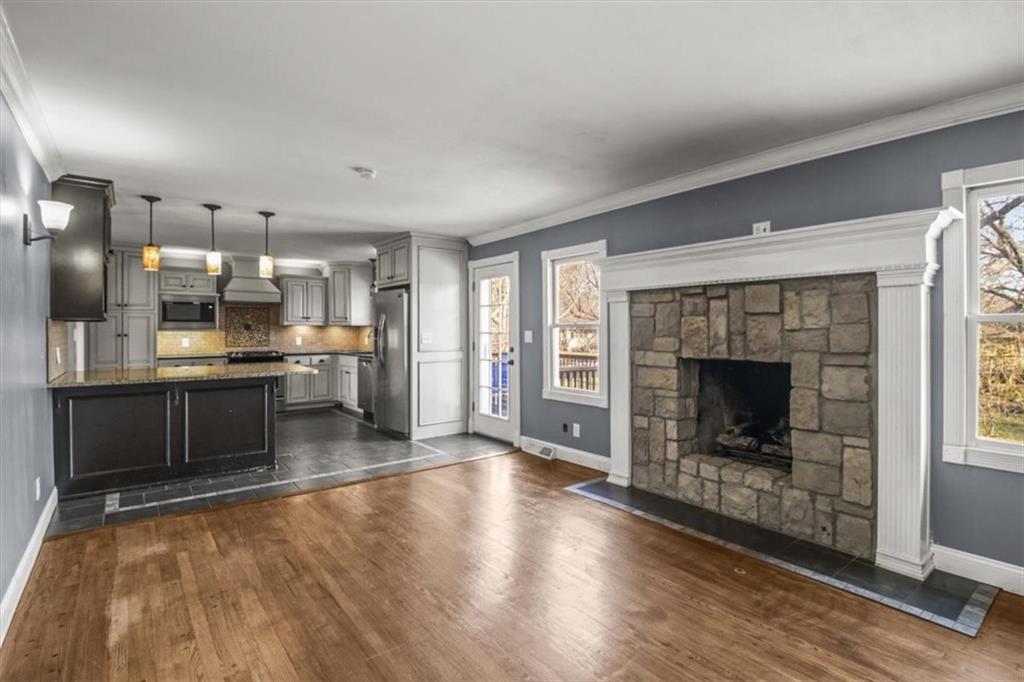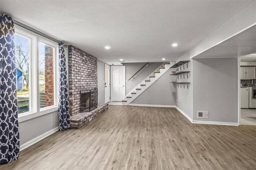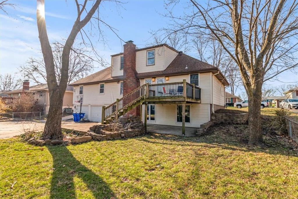 The spacious ranch you've been waiting for! This home offers over 2700 sq ft, 4 bedrooms, 4 full bathrooms and a 2 car garage. You will love the wood floors throughout along with the beautifully updated kitchen featuring custom kitchen cabinets, granite countertops and peninsula island. Primary bedroom, two additional rooms and 2 full baths on the main level. Upstairs you'll find an oversized bedroom perfect for teens or home office along with another full bath. Fully finished basement offers walk out, mini bar, full bathroom and non conforming 5th bedroom. Outside enjoy a large yard and the cutest little shed! Excellent value for space and condition located in non HOA subdivision in Lee's Summit, walking distance to elementary school, near shops, restaurants and highways!