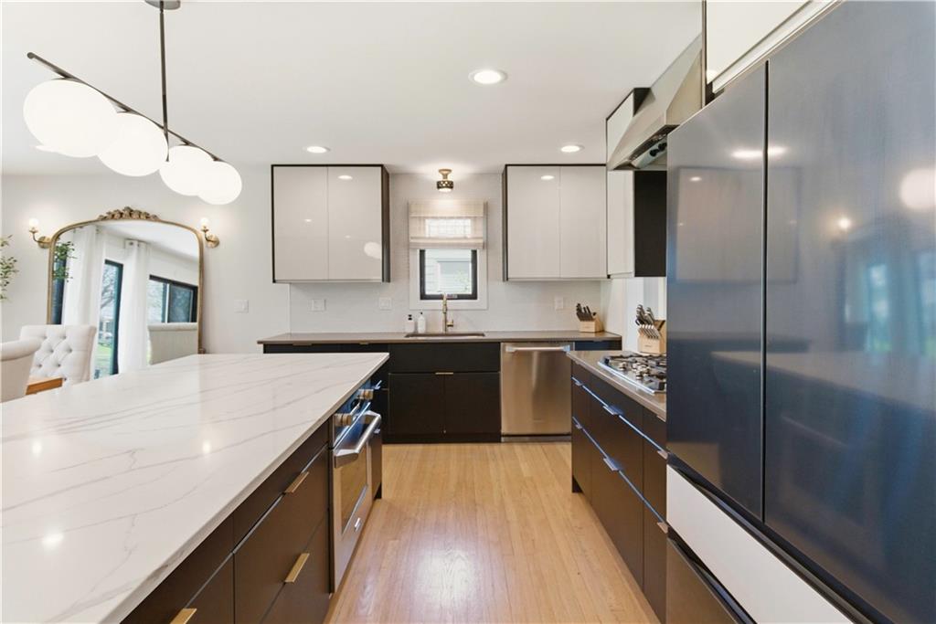 Welcome to 6348 Reeds— Refinished hardwoods and fresh neutral paint create a light, clean, and inviting canvas throughout. Thoughtful upgrades include Lutron lighting, a smart thermostat, and remote keyless entry for effortless on-the-go lifestyles. Major systems have been recently updated with a high-efficiency furnace, power-vent water heater, and A/C. The kitchen is designed to host and impress with GE appliances, French door refrigerator with interchangeable panels, gas range, double ovens, and an oversized island with seating for many! The walk-in butler’s pantry features a built-in desk, window seat, and extensive custom cabinetry. Exceptional pantry and cupboard storage for everyday function. All appliances stay, including like-new washer and dryer. The hearth room just off the kitchen is filled with natural light from floor-to-ceiling windows and anchored by a gas fireplace. Upstairs, the primary suite stands out with two walk-in closets with custom built-ins and an iconic vintage pink soaking tub paired with penny tile, complemented by a walk-in spa shower, floating vanity, and additional linen closet. Additional bedrooms offer flexibility for office, nursery, or dressing space, with a full updated hall bath to match. The lower level expands your living space with a large rec area, fireplace, laundry and mudroom with built-ins, and a future fourth bedroom complete with egress window, walk-in closet, and full en-suite bath. Generous storage keeps everything organized and out of sight. Outside, enjoy a concrete patio, raised garden beds, and an additional area of living space for summer evenings. The garage offers great depth for storage, a workbench, or hobby use. Minutes from the Plaza, Prairie Village Shops, I-35, and Shawnee Mission Parkway—this home blends design, function, and location. A rare opportunity to step into a home that’s already been thoughtfully completed- you won't want to miss it!