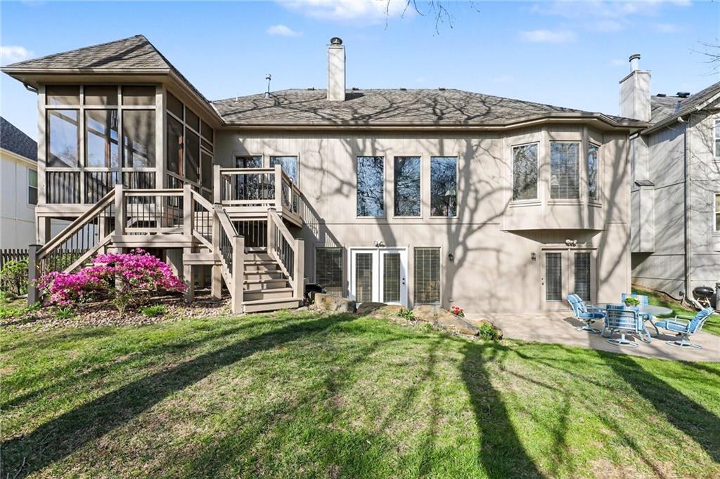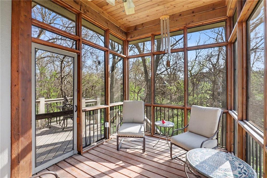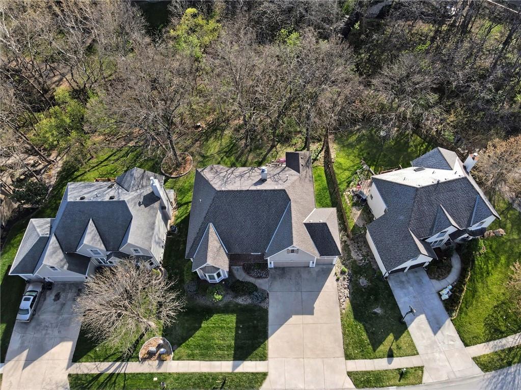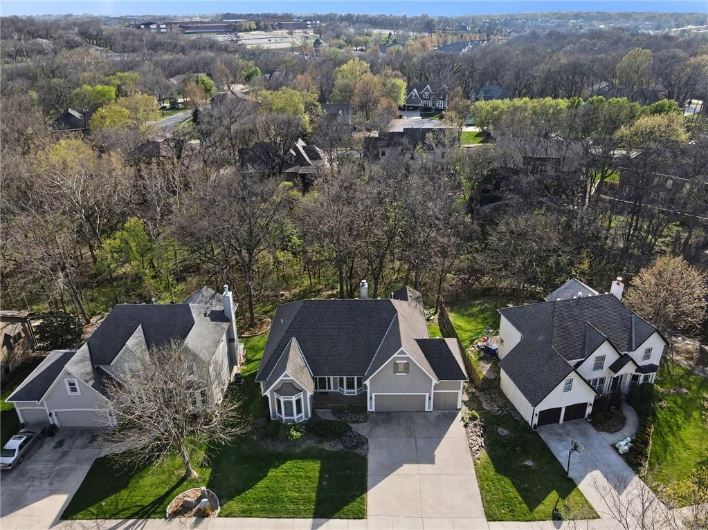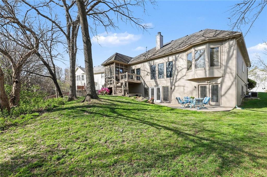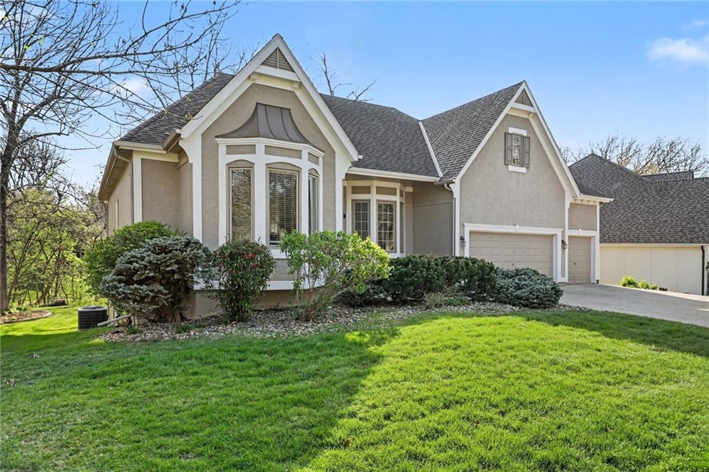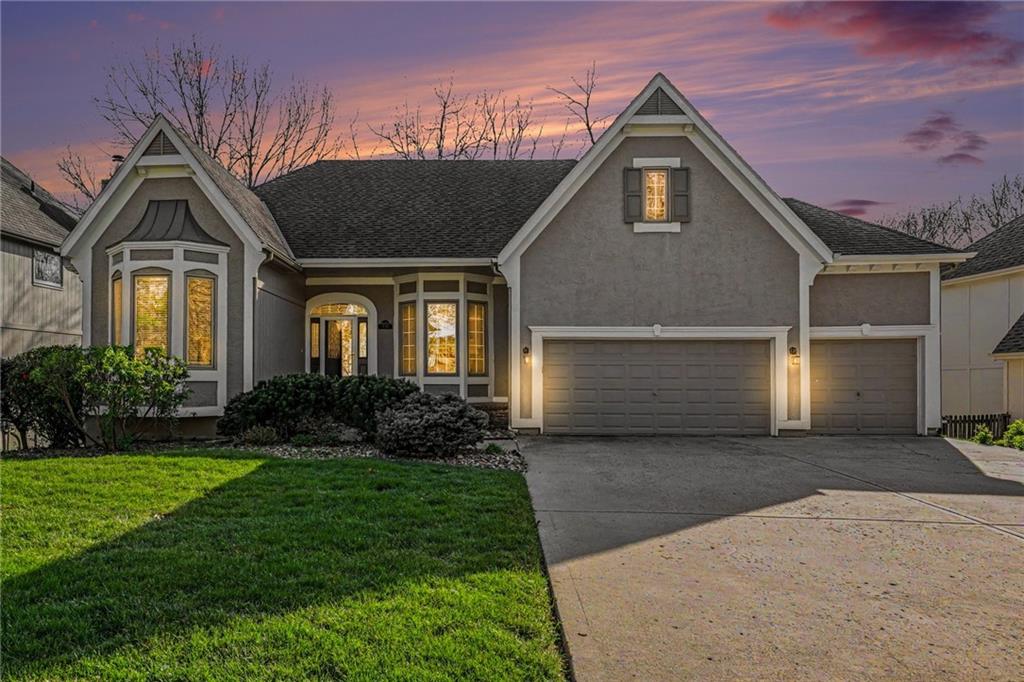 Dreaming of a reverse 1.5-story walkout home backing to a serene wooded lot with a small creek? Look no further! This inviting 4-bedroom, 3-bath home offers the perfect blend of comfort and nature. You’ll love the soaring 11-foot ceilings in the great room, featuring a see-through gas log fireplace and an abundance of windows showcasing panoramic views of the woods. The spacious hearth room kitchen shares the see-thru fireplace, creating a warm and inviting atmosphere, and boasts granite countertops, a large island, freshly enameled tall cabinets, a new Bosch dishwasher and KitchenAid cooktop. A convenient main floor laundry room includes built-ins and a generous folding counter. Enjoy casual meals in the breakfast room or step out to the screened-in porch to sip coffee and enjoy peaceful, wooded views. A formal dining room provides the perfect setting for more upscale entertaining. The main floor primary suite features a bay window and a spacious bath with a whirlpool tub, large shower, and an oversized walk-in closet with multiple hanging racks. A finished walkout lower level offers a huge family room ideal for gatherings, plus access to a patio for outdoor entertaining. Two additional large bedrooms—one with an atrium door to the patio—and a full hall bath complete the lower level. Ample storage is available with two unfinished areas. The three-car garage provides plenty of space for vehicles and lawn equipment and includes a rear yard access door. Enjoy a built-in sprinkler system which helps maintain a lush lawn. Major updates include a one year old HVAC system with humidifier and a new hot water heater. A BRAND NEW ROOF WILL BE INSTALLED PRIOR TO CLOSING. There is also a central vac system to make cleaning easy. This home truly has it all—plenty of space and a beautiful natural setting! Enjoy easy highway access, multiple retail shops and restaurants, and top notch Olathe schools.