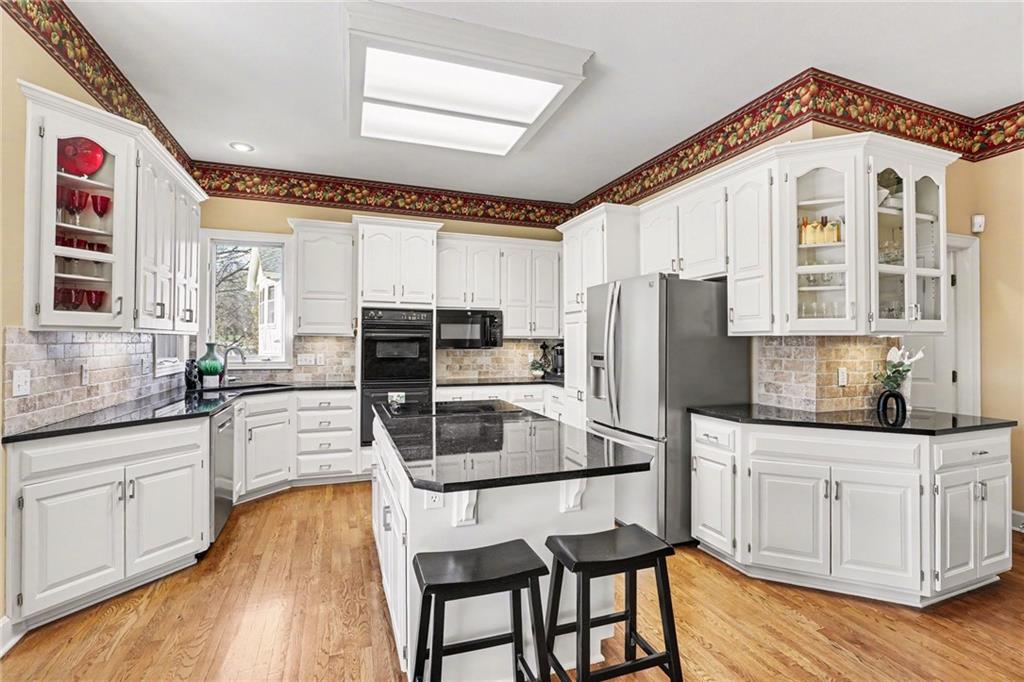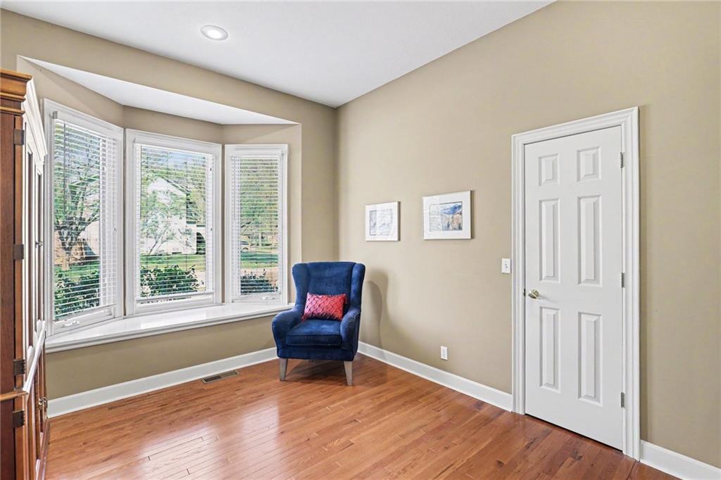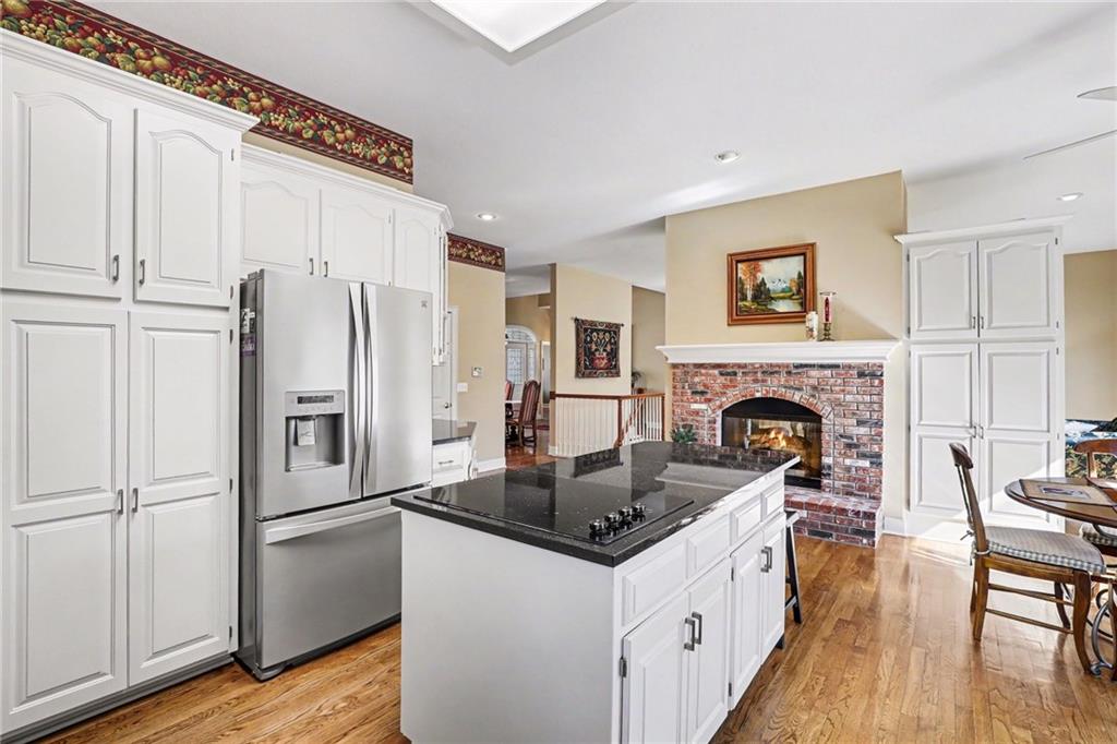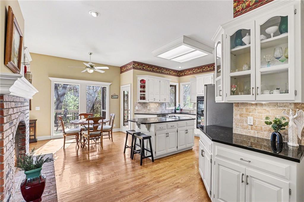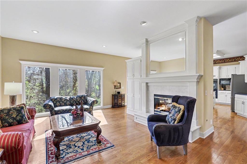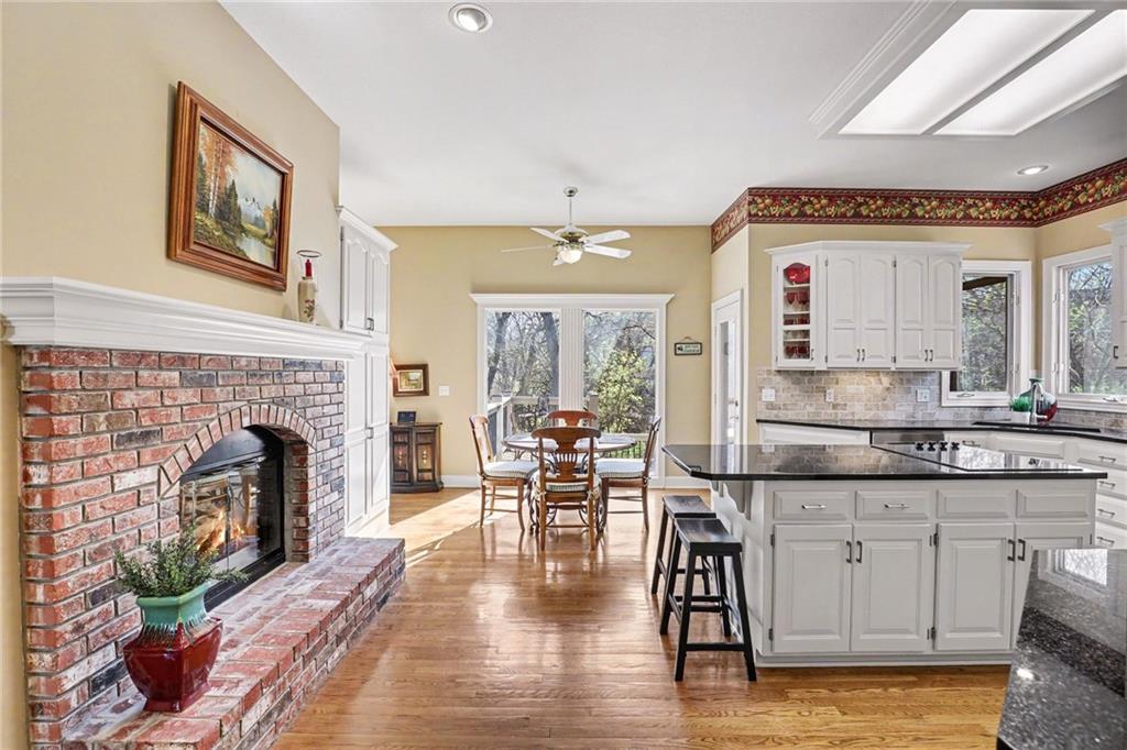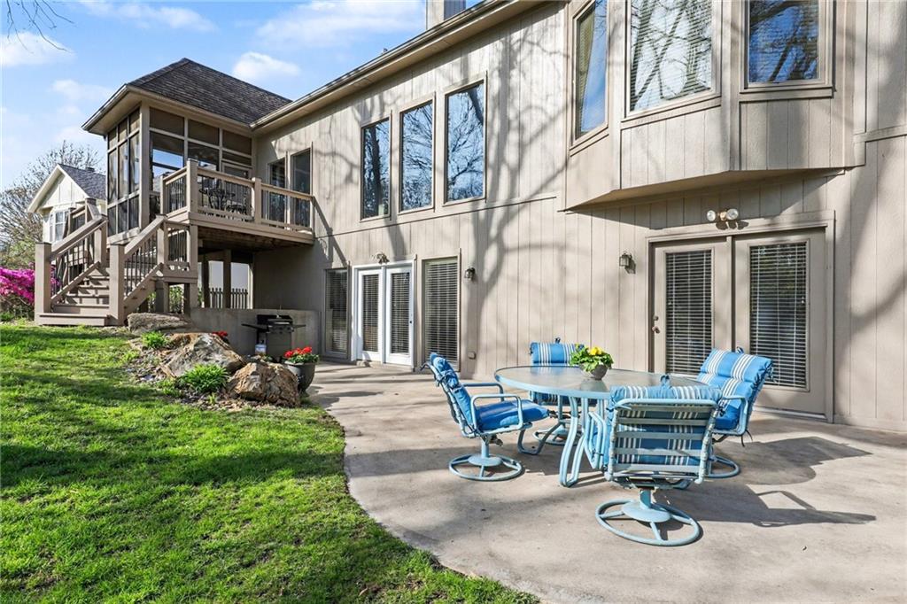 Dreaming of a reverse 1.5-story walkout home backing to a serene wooded lot with a small creek? Look no further! This inviting 4-bedroom, 3-bath home offers the perfect blend of comfort and nature. You’ll love the soaring 11-foot ceilings in the great room, featuring a see-through gas log fireplace and an abundance of windows showcasing panoramic views of the woods. The spacious hearth room kitchen shares the see-thru fireplace, creating a warm and inviting atmosphere, and boasts granite countertops, a large island, freshly enameled tall cabinets, a new Bosch dishwasher and KitchenAid cooktop. A convenient main floor laundry room includes built-ins and a generous folding counter. Enjoy casual meals in the breakfast room or step out to the screened-in porch to sip coffee and enjoy peaceful, wooded views. A formal dining room provides the perfect setting for more upscale entertaining. The main floor primary suite features a bay window and a spacious bath with a whirlpool tub, large shower, and an oversized walk-in closet with multiple hanging racks. A finished walkout lower level offers a huge family room ideal for gatherings, plus access to a patio for outdoor entertaining. Two additional large bedrooms—one with an atrium door to the patio—and a full hall bath complete the lower level. Ample storage is available with two unfinished areas. The three-car garage provides plenty of space for vehicles and lawn equipment and includes a rear yard access door. Enjoy a built-in sprinkler system which helps maintain a lush lawn. Major updates include a one year old HVAC system with humidifier and a new hot water heater. A BRAND NEW ROOF WILL BE INSTALLED PRIOR TO CLOSING. There is also a central vac system to make cleaning easy. This home truly has it all—plenty of space and a beautiful natural setting! Enjoy easy highway access, multiple retail shops and restaurants, and top notch Olathe schools.
