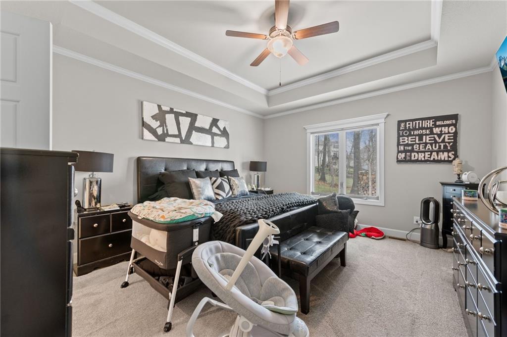 Welcome to this inviting reverse 1.5-story home that offers comfortable living, thoughtful design, and a hard-to-beat location. The main level features an open and functional layout with a spacious kitchen complete with granite countertops, a pantry, and a center island with a sink, making meal prep and entertaining easy. The kitchen flows seamlessly into the breakfast area and great room, where a cozy fireplace is framed by large windows on each side, filling the space with natural light and backyard views. The primary suite provides a relaxing retreat with a bathroom that includes dual sinks, a soaking tub, a separate toilet room, and a large walk-in closet with built-in shelving. Also on the main level is a second bedroom, a full bathroom with shower, and a laundry room with cabinet storage for added convenience. The finished lower level expands the living space with a large family room featuring a big window for natural light, along with third and fourth bedrooms and a full bathroom with a shower over the tub, offering plenty of room for guests, hobbies, or a home office. Step outside to enjoy the deck overlooking a treed, partially fenced backyard, providing a peaceful setting for relaxing or entertaining. Located in a prime area with easy access to downtown and the airport, this home combines space, comfort, and convenience.