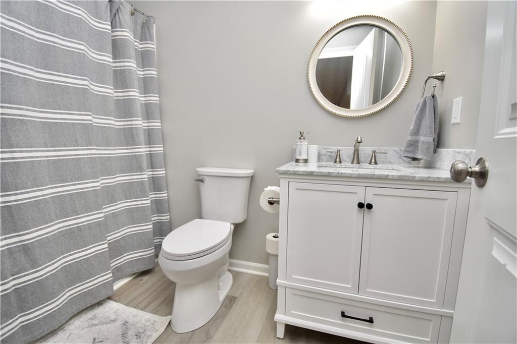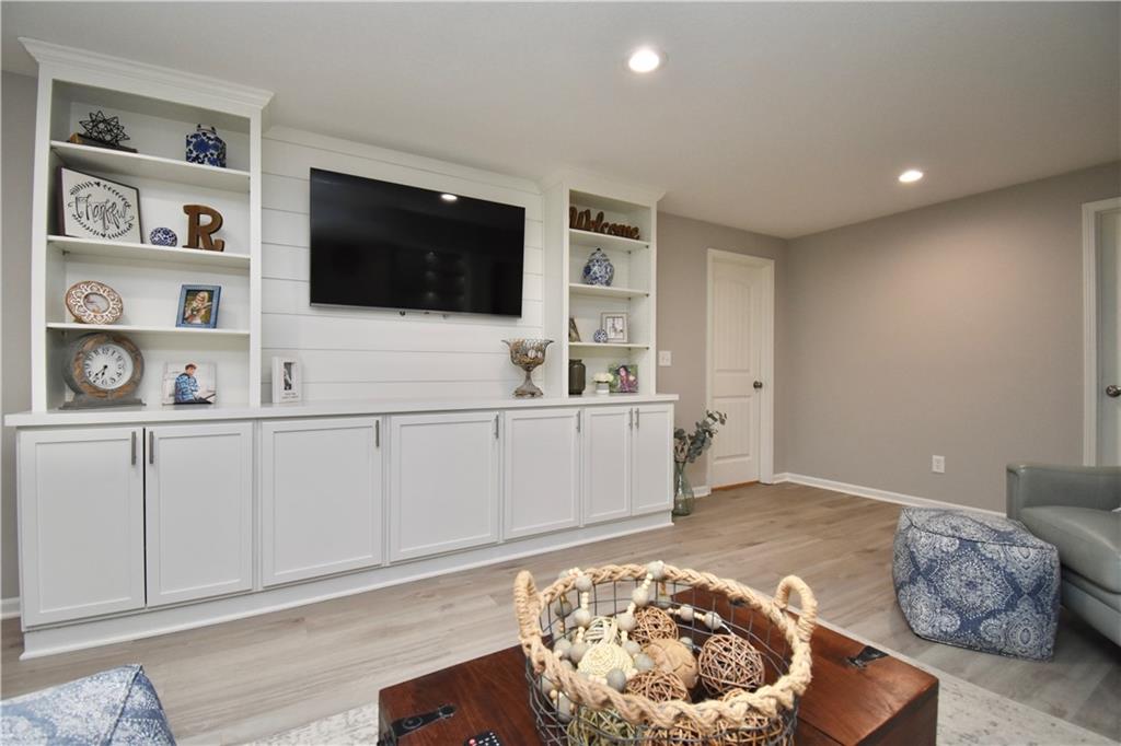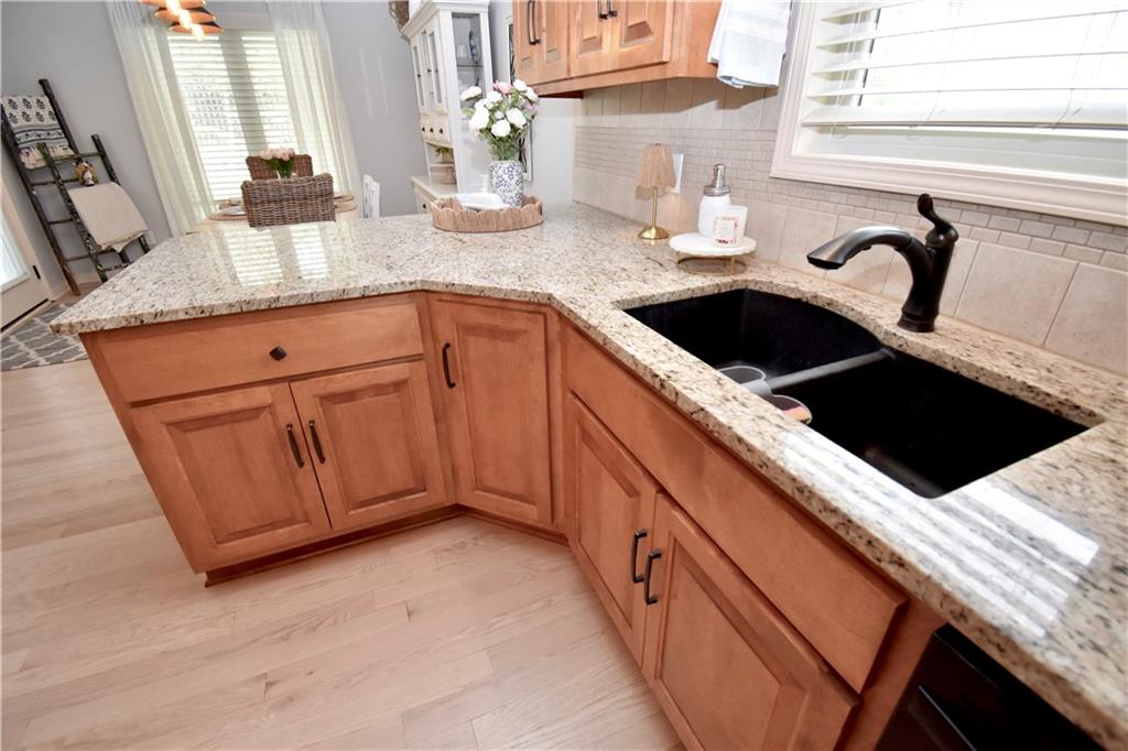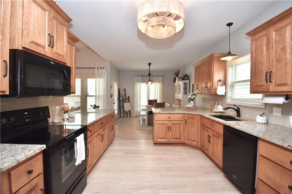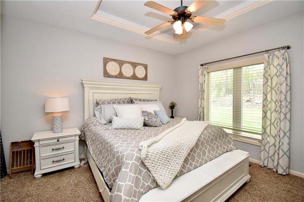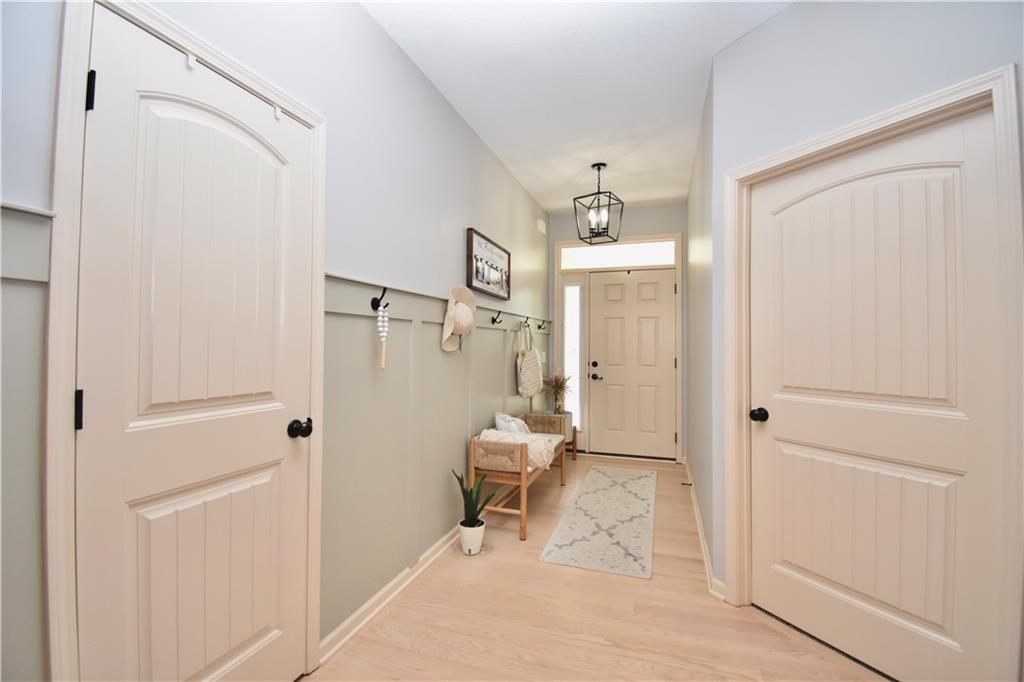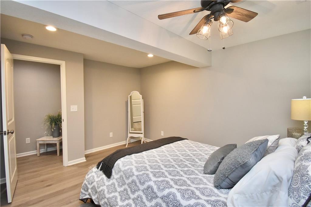 Beautifully updated reverse 1.5 Story on a quiet cul-de-sac in Liberty w/CRAZY LOW HOA fees of JUST $67/month! This well-maintained, 10-year-old home offers approximately 2,600 sq ft of finished living space plus aprox. 900 sqft in the lower level. Seller spent $80,000+ in upgrades completed in the past two years. HOME Designed for easy main-level living, this home features zero-entry access, wider doorways, & low-profile step-in showers. Open floor plan showcases fresh interior paint, new hardwood floors, natural color, throughout the entry, living, dining, and kitchen areas, and a stylish board-and-batten accent wall, refrigerator stays! Kitchen is both functional and inviting with a granite peninsula island, full-extension drawers, pull-out shelving, and all-new lighting. The primary suite offers a spa-like retreat with a fully remodeled bathroom featuring Carrara marble finishes, frameless glass shower, tiled floors, and trendy built-in shelving. The main level includes a total of two bedrooms, a second full bath with linen closet, and a spacious laundry room with additional storage. All new Lighting, new stair carpet, & carpet in 1 bdrm. The recently finished lower level expands the living space w/luxury LVP flooring, large family room w/custom built-ins, a stunning 7-foot bar w/Carrara marble, two additional bedrooms (one non-conforming), walk-in closets, a full bathroom & plentiful storage space. Enjoy nearly 400 sq ft of outdoor living space, including a covered patio and extended paver patio with a lighted sitting wall—perfect for relaxing or entertaining—backing to a private tree-line w/ frequent wildlife & beautiful sunsets. HOA does allow fencing! Ideally located just minutes from Liberty Hospital, I-35, 291, and 152, offering quick access to downtown Kansas City and KCI Airport. Maintenance-provided community includes lawn care and snow removal for ONLY $67.00 A Month! HOA has SURPLUS! balance! Liberty School District! Sellers closing date is FLEXIBLE!
