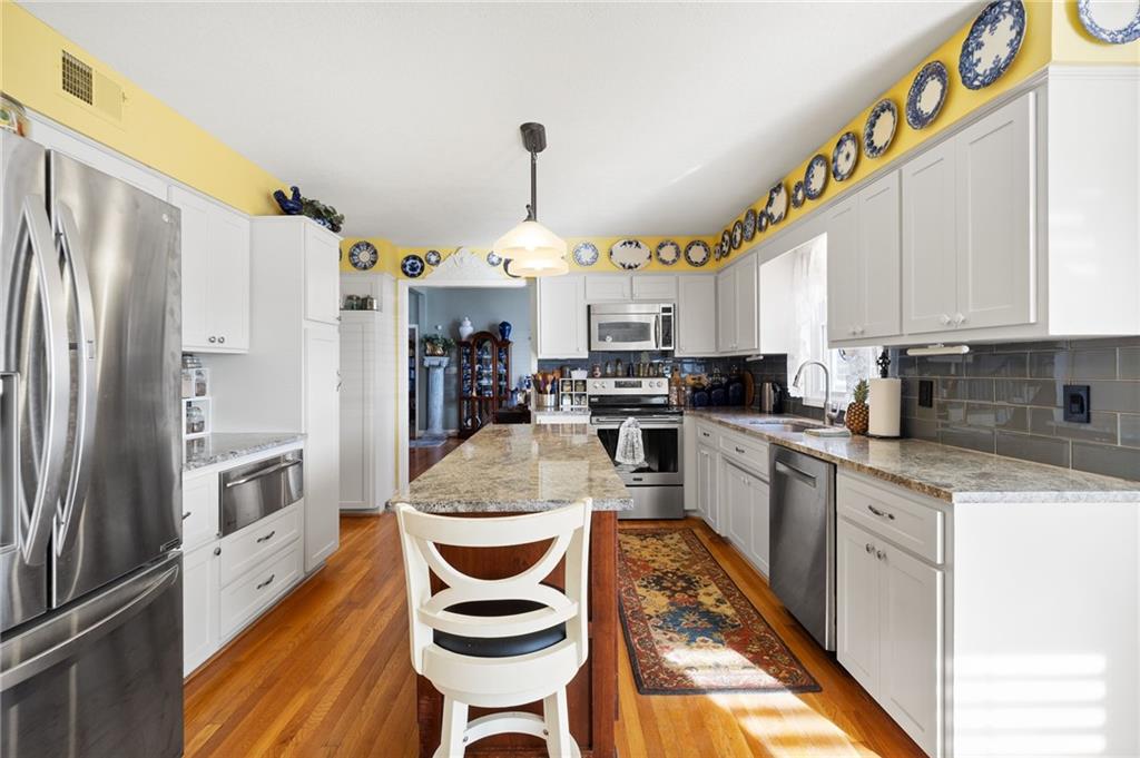 If you want a home that supports your lifestyle and has investment potential, this master-crafted Northland residence is the rare exception! This home offers nearly 4,300sqft of space, starting with a gourmet chef’s kitchen featuring granite countertops, a large island, stainless appliances, and a warming oven for perfect hosting. The main floor flow is natural and unhurried, with high ceilings and a sun-drenched living room anchored by a classic fireplace and custom stained-glass accents. A dedicated office on this level provides the perfect retreat. Upstairs, you will find four large bedrooms, including an oversized primary suite with an expansive walk-in closet, a private skylight, and a heated tile bathroom floor. Another hard to find feature is the fully finished walkout basement that offers an impressive self-contained living suite. This is a complete second home with its own full kitchen, full bath, serving bar, and a large fifth bedroom. Whether for multi-generational living or potential rental income to offset your mortgage, this suite provides a massive financial advantage as a short-term rental, especially with the World Cup coming to Kansas City this summer. All fixtures, including the tankless water heater, are premium American Standard quality. Outside, you enter a private sanctuary that feels like your own park. This fully fenced English-garden retreat includes arbors, wrought iron, and three separate Trex decks. Situated just 25 minutes from both downtown Kansas City and the airport, this home is a true green-energy standout with owned solar panels and no remaining payments. While neighbors worry about utility rates, you will enjoy remarkably low overhead. From the quiet gardens to the HOA pool, every detail has been maintained with an obsession for quality. This is a rare property with immense space, beauty, and financial upside. Click "Contact Johnnie" today for more details and to schedule your private tour!