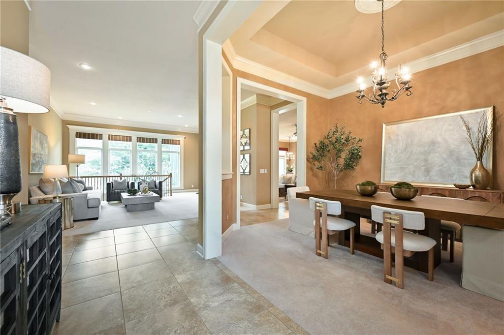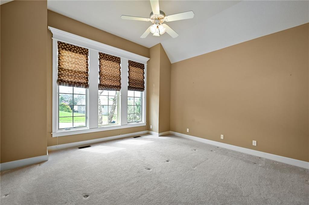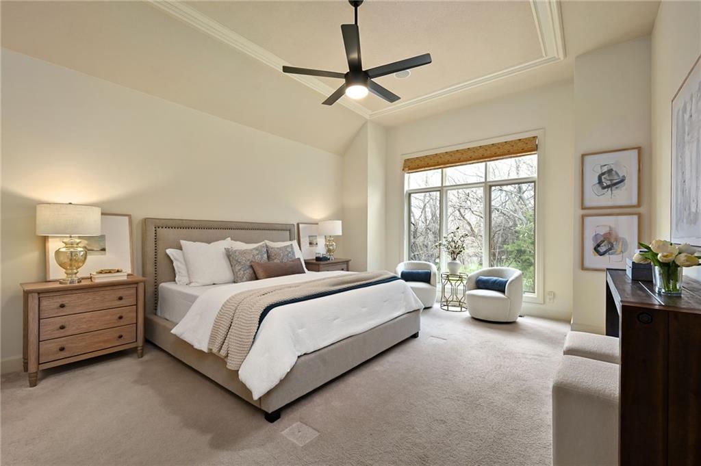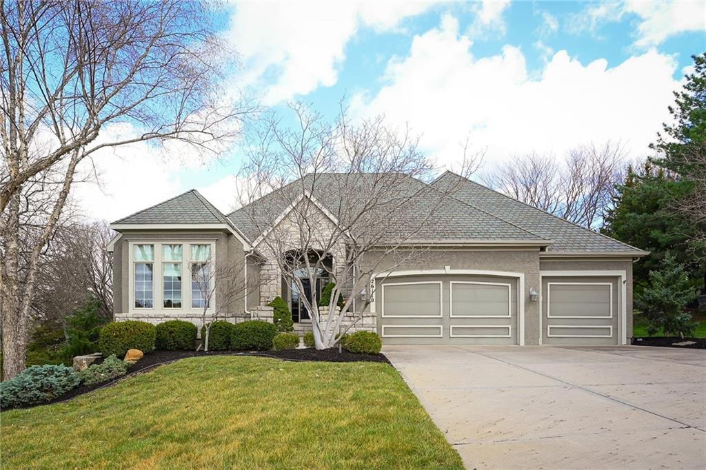 Set at the end of a quiet cul-de-sac in Cedar Creek, this meticulously maintained reverse 1.5-story pairs refined scale with a private, tree-lined backdrop. With 4 bedrooms, 3.1 baths, a 3-car garage, and 4,015 square feet on a .42-acre lot, the layout delivers substantial main-level living with beautifully finished space below. Approximately 2,815 square feet on the main floor is elevated by high ceilings, generous windows, and seamless flow through the formal dining room, great room, hearth area, and kitchen. A see-through fireplace connects the great room and hearth room, creating warmth and architectural interest. Designed for both daily living and entertaining, the kitchen features a Sub-Zero refrigerator, Viking cooktop, wine fridge, bar-height seating, and breakfast nook. The main-level primary suite offers a calm, spacious retreat with vaulted ceilings, soft natural light, and peaceful views of the trees beyond. The ensuite bath is designed for everyday comfort with a jetted tub, double vanity, and a walk-in shower with an open entry. A substantial walk-in closet adds exceptional storage and organization, completing a private haven that feels both luxurious and serene. Downstairs, the finished daylight walkout lower level adds exceptional flexibility with a large family room, fourth bedroom, full bath, and abundant unfinished storage. Outdoor living continues with a screened porch featuring composite decking, a patio, in-ground sprinkler system, and a setting that backs to mature trees. Located in one of west Olathe’s most desirable communities and served by Olathe schools, Cedar Creek offers swim and racquet amenities, pickleball and tennis courts, Shadow Lake, trails, neighborhood events, and more. Golf is available with separate membership, while convenient access to 119th Street, K-10, and the greater Kansas City metro adds to the appeal. Arrange your private tour to appreciate the setting, layout, and finish in person.