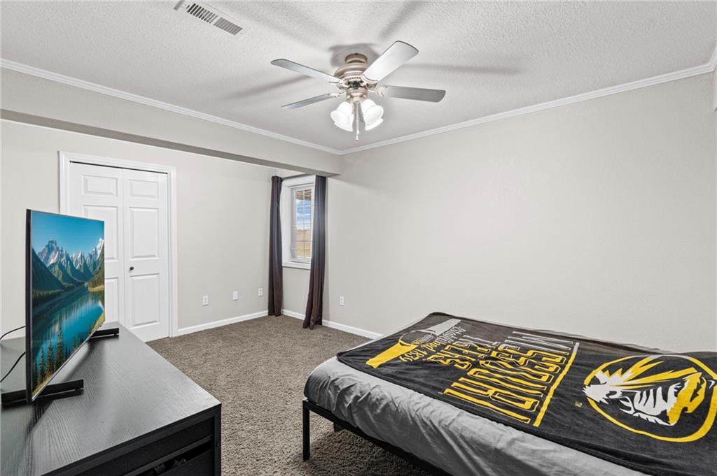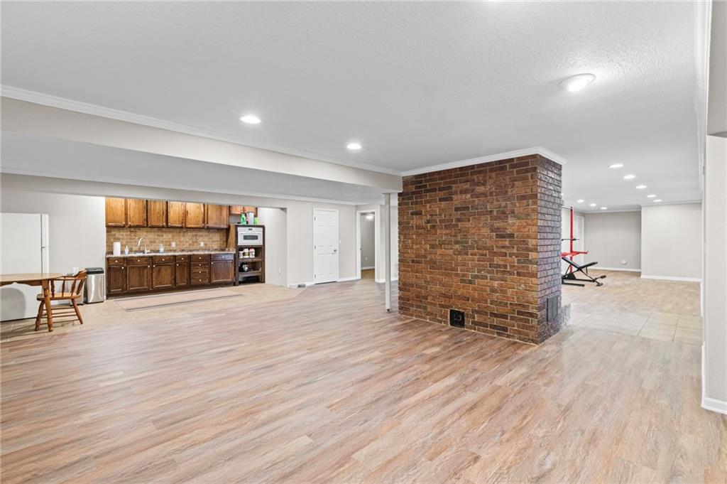 Enjoy peace, quiet, and a fantastic location—just 30 minutes to Liberty and 15 minutes to Excelsior Springs. Settled on 7.63 private acres, this brick ranch is rare. Step inside the grand, 14-foot entryway, where you'll find high-quality, durable tile work that continues into the kitchen. The home's custom woodwork is immediately apparent, setting a tone of enduring quality. The spacious kitchen is a foodie's delight, appointed with NEW GRANITE COUNTERTOPS, a pull-out-drawer pantry, a heavy-duty gas cooktop, and a charming breakfast nook with picturesque views. The main living area is anchored by one of two oversized cast-iron wood-burning hearths. Paired with NEW WINDOWS throughout and NEW CARPETING, NEW GARAGE DOORS and OPENERS, this home offers remarkable energy efficiency. Imagine cozy winters where these powerful hearths can heat the entire home, keeping comfort high not utility costs. The master suite is an escape. The private en suite features an elegant, walk-in shower and a luxurious dual waterfall Jacuzzi tub. NEW "his and her" vanities and oversized closets complete this personal touch. The versatile finished walk-out basement, including NEW LVP FLOORING, offers nearly 2,000 sq ft of incredible potential. It includes a beautifully finished bathroom, bedroom, kitchenette, extra room for home office or play space, and a concrete-enclosed "safe room." Step outside to enjoy peaceful country living from the massive rear deck. You can rest easy knowing that major system updates are complete, ensuring years of worry-free living. The home is equipped with NEWER HVAC, and two water heaters. This is more than a home. It offers exceptional quality and endless possibilities. Thank you for looking!