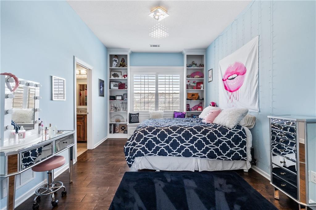 Located in the desirable River Ridge Farms West subdivision, this exceptional home is framed by beautifully landscaped grounds and a welcoming front façade that radiates elegance. Set on an estate lot (over half an acre) with open rear views, the home offers privacy and tranquil sunset vistas. A formal dining room off the entry flows seamlessly into the open two-story great room, filled with natural light and anchored by a striking corner fireplace, creating a warm and inviting atmosphere. The chef’s kitchen features granite countertops, a marble backsplash, Thermador double wall ovens, ample cabinet and counter space, and a walk-in pantry. An adjacent dining area opens to a grill deck, perfect for effortless outdoor entertaining, and leads directly into a sunroom with a floor-to-ceiling stone fireplace and built-in shelving—a cozy retreat for morning coffee or relaxing any time of day. The primary suite is a serene haven with tray ceilings and abundant natural light. Its ensuite bath includes double vanities, a soaking tub, and a separate walk-in shower with dual shower heads. Spacious secondary bedrooms each feature their own private bathrooms, and two laundry rooms make daily living convenient. The expansive finished walkout lower level offers versatile living space with a rec room, wet bar, an additional bedroom, and full bathroom. Step outside to a patio overlooking the large backyard, ideal for relaxing or entertaining. A circular driveway provides easy access, and the 4-car garage with extended storage accommodates vehicles, bikes, and more. Located in the highly sought-after Blue Valley School District, this home offers easy highway access and is conveniently close to shopping, dining, and less than 5 minutes to Aubrey Vineyards. Your lifestyle of tranquility and comfort awaits.