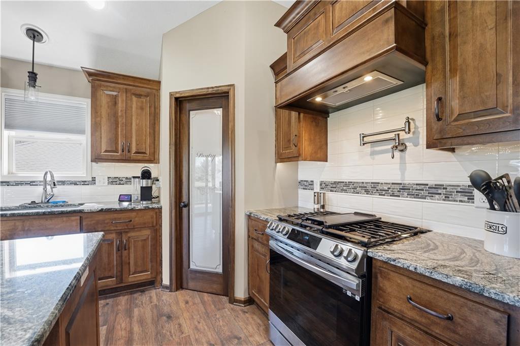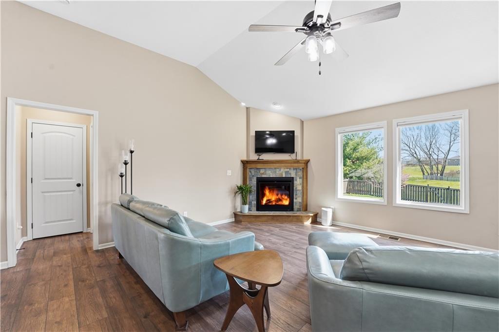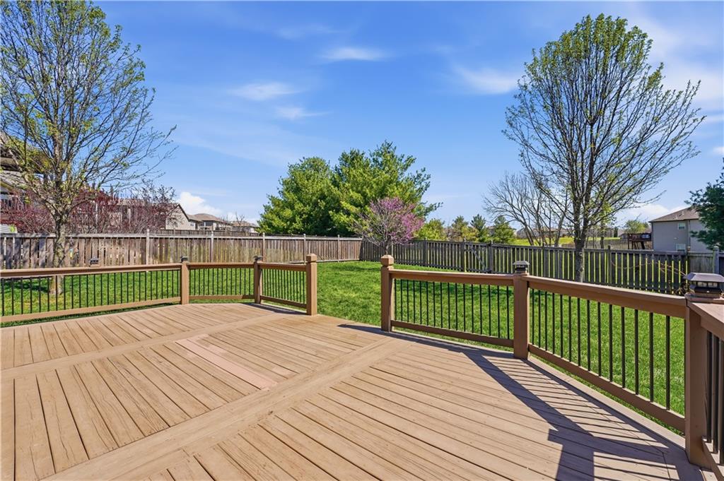 Better Than New in Woodland Creek! Fully rebuilt Monarch floor plan offering the look, feel, and peace of mind of new construction—without the wait. Originally built in 2016 and reconstructed down to the studs in 2023, this home is truly move-in ready with today’s finishes, upgraded features, and a highly desirable layout. Featuring 4 bedrooms, 3 full baths, and a 3-car garage, the open floor plan is designed for both everyday living and entertaining. The kitchen stands out with granite countertops, expanded cabinetry and counter space, under cabinet lighting, gas range with custom hood vent and pot filler, and an oversized walk-in pantry. All appliances stay, including washer and dryer. The primary suite offers a private retreat with a beautifully appointed bath featuring an onyx walk-in shower. Two gas fireplaces create warm, inviting spaces to relax or gather. Step outside to a covered deck with stairs to a lower deck, overlooking a fully fenced yard backing to green space—offering privacy and a peaceful setting. Additional highlights include a Rachio smart irrigation system. Located in Woodland Creek within the highly rated Smithville School District. Homes with this level of finish, setting, and condition rarely come available—schedule your showing today.