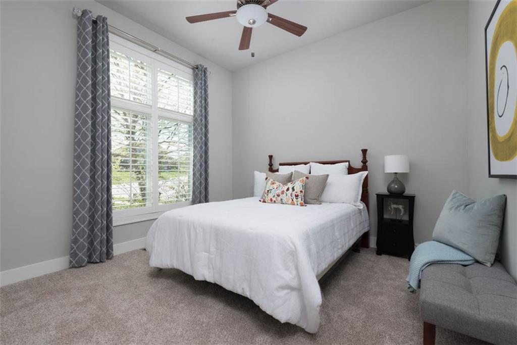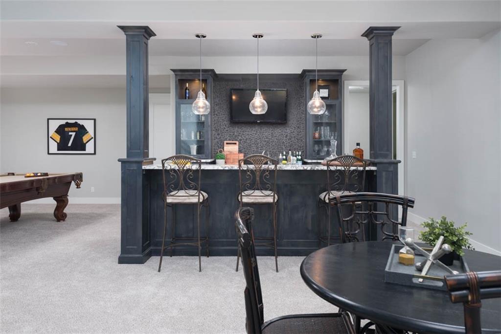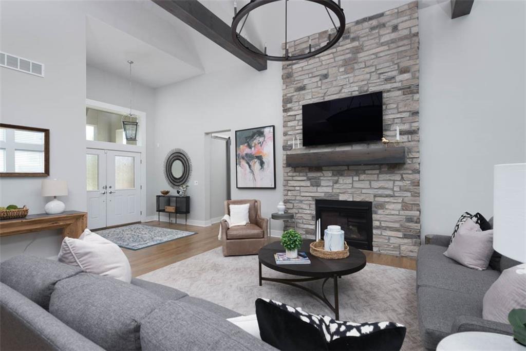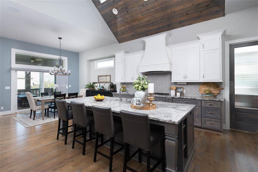 Positioned on a walkout corner lot in the sought-after Colton community, this custom Brookridge II by Don Julian Homes offers a refined take on reverse 1.5-story living with impeccable upgrades throughout. From the moment you step inside, soaring ceilings and expansive 3-floor window wall create a sense of openness, while rich architectural details bring warmth and character to the main living spaces. At the center of the home, the kitchen is both breathtaking and functional, anchored by an oversized island, abundant custom cabinetry, stunning backsplash and countertops, and a walk-in pantry designed for effortless organization. The adjoining dining area flows seamlessly to the covered deck, where a fireplace and elevated views create an inviting extension of the home, ideal for both quiet evenings and hosting with ease. The main-level primary suite is designed as a true retreat, featuring a spa-like bath with an oversized shower and rain head, dual vanities, and a generous walk-in closet that connects directly to the laundry room for added convenience. A secondary bedroom AND dedicated office or flex space complete the main floor, offering versatility without sacrificing comfort. The walkout lower level is equally impressive, with 10-foot ceilings that enhance the sense of space. A large recreation area, media space, and full bar create an ideal setting for entertaining, while additional bedrooms and baths provide privacy for guests. Outdoors, the experience continues with a spacious patio, firepit area, built-in grill, and a wide stretch of green space that feels both open and private, an ideal backdrop for everyday living and memorable gatherings. Garage features epoxy floors and custom cabinets! Every element of this home has been carefully curated to offer a balance of elevated design and effortless livability. A fantastic neighborhood just minutes away from dining, shopping, schools, highways, and entertainment, this stunning custom home has it all!