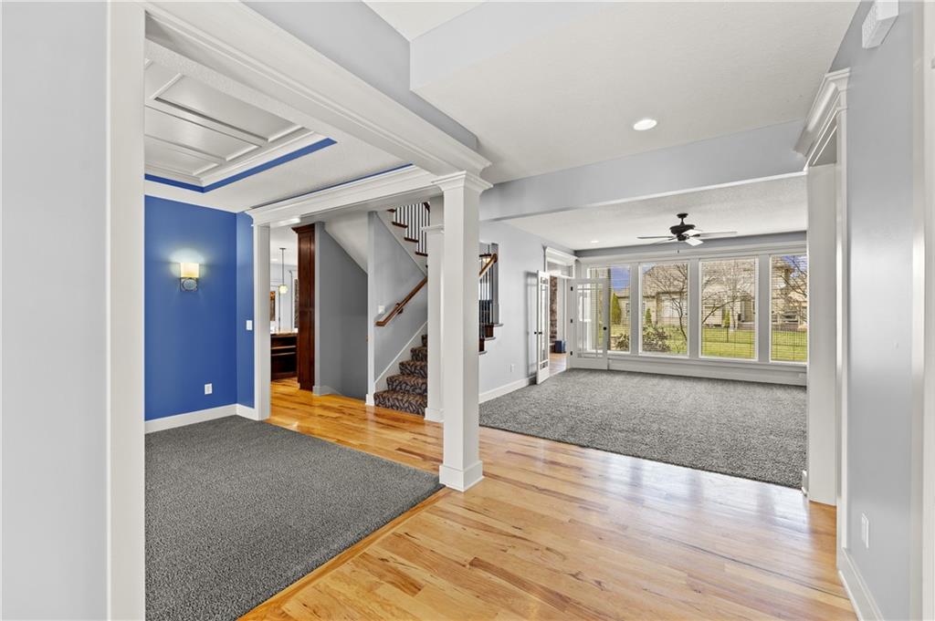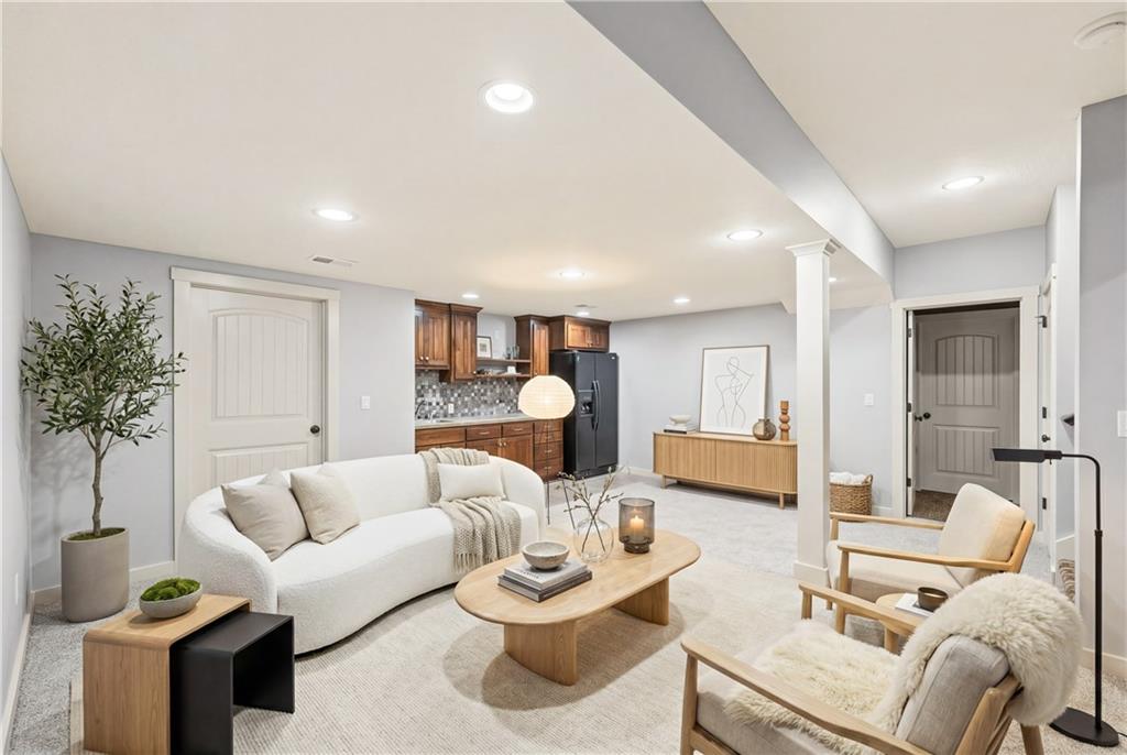 Tucked into one of Shawnee’s most sought-after communities, this two-story home offers a strong combination of space, functionality, and a well-designed layout. Once inside, you’re welcomed by an open entry, split staircase, and natural light that carries throughout the home. The kitchen is well-appointed with an oversized island, abundant cabinetry, and a natural connection to the main living areas, making it easy to live in and easy to entertain. The layout offers a balance of open flow and defined spaces, including a private office, formal dining, and multiple living areas. Out back, the custom flagstone patio with firepit and TV setup overlooks a well-maintained, landscaped yard, creating a comfortable space to unwind or host. Several key updates have already been completed, including a new roof, exterior and interior paint, carpet, and HVAC, along with a whole-home humidifying system for added comfort. The primary suite offers a true retreat with a sitting area, spacious bath, and generous closet space. The finished lower level expands the home with a kitchenette, theater room, large rec area, two bedrooms, full bath, and ample storage, well-suited for guests or extended living. Additional features include an in-ceiling sound system, laundry hookups on both levels, and an oversized garage with workspace. A dedicated dog kennel room adds a unique and thoughtful touch. Located near elementary, middle, and high schools, along with parks, trails, shopping, and dining.