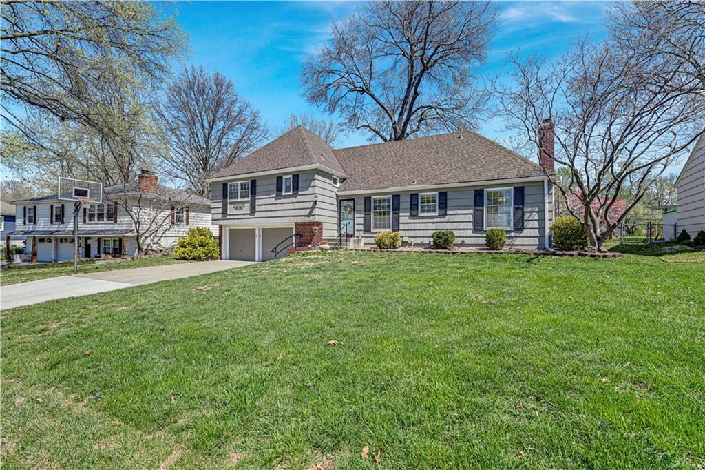 You’ll want to hurry on this one! This beautifully maintained 4BR, 3BA side/side split sits on a stunning ½+ acre lot in the heart of Overland Park & move-in ready. Lovingly cared for by its current owners, this home features thoughtful updates thruout. The kitchen has been reimagined w/new flooring, painted cabinetry—including open shelving and lighted glass-front cabinets—plus a newer stove & added can lighting for a bright, modern feel. Main level has been opened up to create a seamless, inviting space perfect for everyday living & entertaining, complemented by beautifully refinished hardwood floors. 3BR's are conveniently located on the same level, all featuring hardwood flooring. The primary suite, situated at the front of the home, offers an updated en suite w/solid surface vanity & custom-designed closet system for optimal storage. The hall bath has also been refreshed w/updated vanity & lighting & serves the addl BR's. The 4thBR, located just half a level up, provides added privacy & includes its own updated en suite bath w/shower—ideal for guests, home office, or private retreat. The LL has been transformed into a versatile space featuring a cozy TV/play area, bar area & dedicated exercise space with rubber mat flooring. You’ll also find the laundry room here, complete with a convenient utility sink. Storage is abundant throughout, including easy attic access off the fourth bedroom. Step outside and prepare to be impressed. The expansive, fenced backyard is a rare find, offering endless possibilities. Custom built TV cabinet is in place to enjoy the patio, or gather on the multi-level deck (with BONUS roll-out storage) that beautifully wraps around a mature tree—creating a one-of-a-kind outdoor entertaining space. The backyard also features a charming outbuilding, swingset, and permanent picnic table—all of which stay with the home. Whether you envision a garden, pool, sports area, or all of the above, there is room to make it your own.