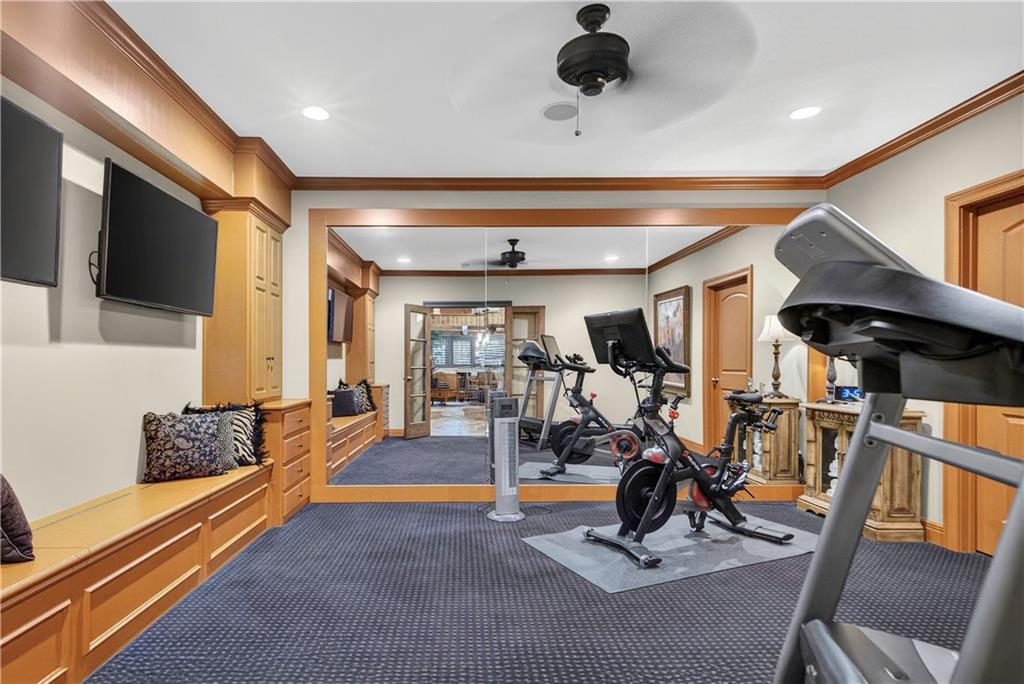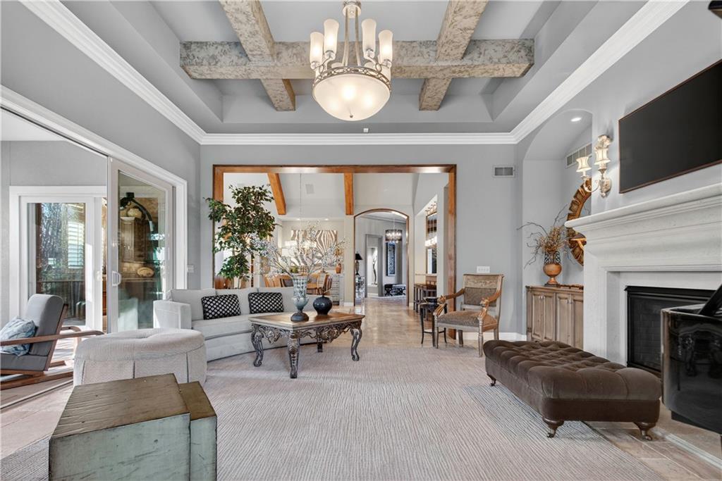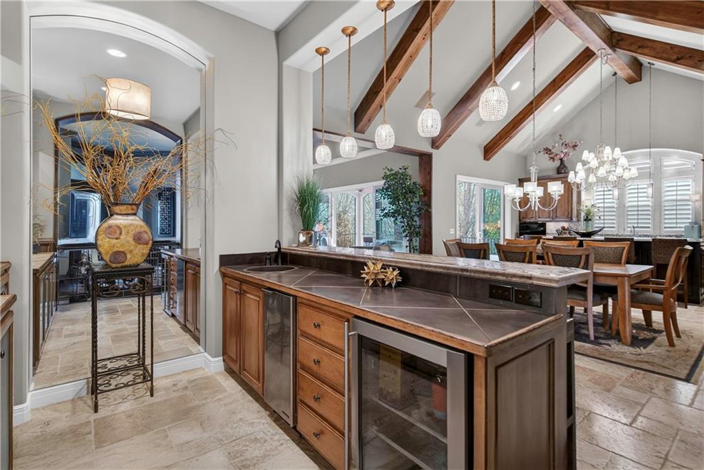 Step into the original & iconic Clydesdale floor plan -The blueprint for one of Johnson County's most sought-after luxury layouts. Built by Willis Custom Homes as the builder's personal residence, this home offers over 5300 sqft of elevated detail & finish, setting the benchmark that dozens of luxury home builders across Johnson County have followed for more than a decade. The craftsmanship, materials, & construction quality simply cannot be replicated anywhere close to this price point today. Rich stained woodwork and natural stone tile floors on main and lower level create a warm, welcoming ambiance from the moment you enter. Designed with both architectural elegance and everyday livability in mind, the main level is an entertainer’s dream, complete with a wet bar where family and friends naturally gather. Great room and kitchen open to a spacious screened outdoor room with stone fireplace, plus mid-level grilling deck overlooks a stamped concrete patio, creating a seamless indoor/outdoor experience. Lower level is designed for unforgettable entertaining, featuring a large sports bar, home theater, stone fireplace and accent walls, plus generous seating for game days or movie nights. Three additional ensuite bedrooms are located downstairs, along with a dedicated workout room and additional storage beneath the suspended garage. Systems in this amazing home match the finishes and include updated Control-4 whole-house audio/video/security, with 15 TVs (included), 3-zone HVAC with humidifiers, whole-house water filtration, plantation shutters throughout, and a lower courtyard stubbed for hot tub. The warmth, craftsmanship & details that make this home truly special simply can't be captured in photos or words, and we welcome you to experience it in person. The Villas of Whitehorse is a maintenance-provided community --lawn care/snow removal included, with access to neighborhood pool, clubhouse, & tennis courts. Sellers are licensed Real Estate Agents in Kansas.