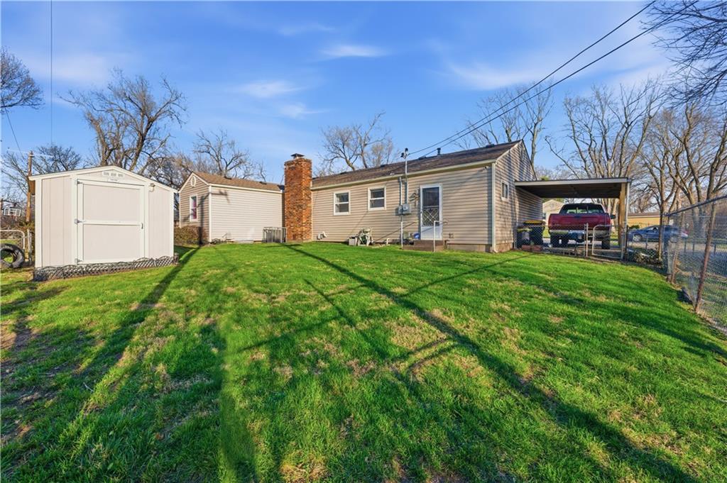 Welcome to this charming ranch-style residence in Kansas City that perfectly blends functional single-level living with cozy architectural character. This well-maintained 3-bedroom home is situated on an expansive corner lot, offering impressive curb appeal highlighted by a deep, covered front porch—the perfect spot for your morning coffee. Inside, you’ll find a spacious living room that flows seamlessly into the heart of the home: a dedicated family room anchored by a classic brick fireplace and custom built-in shelving. Large windows throughout the dining area and kitchen invite an abundance of natural light, highlighting the traditional wainscoting and abundant wood cabinetry. The thoughtful floor plan provides excellent separation of space, featuring a primary bedroom with a private half-bath, two additional well-sized bedrooms, and a centrally located full bathroom. Practicality meets convenience with a dedicated main-floor laundry room situated just off the kitchen for easy access. For those with multiple vehicles or hobby needs, the property boasts both an attached single-car garage and a large, covered carport. With its generous level lawn, mature trees, and move-in-ready bones, this home offers a fantastic opportunity for homeowners and investors alike. Whether you're looking for your first home or a solid addition to your portfolio this is a must-see. Quick Highlights: Bedrooms/Baths: 3 BR / 1.5 BA Key Features: Brick Fireplace, Custom Built-ins, Main-Level Laundry Parking: 1-Car Garage + Large Covered Carport Outdoor: Large Corner Lot & Covered Front Porch Kansas City Roofing Warranty Leaf Guard Warranty Augustin pest control has been coming out for pest control since 1998 AB May Gold plan has taken care of the HVAC twice a year since install in 2014