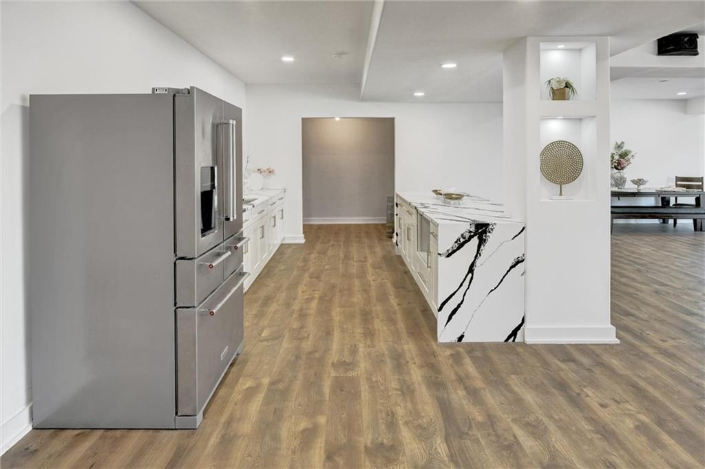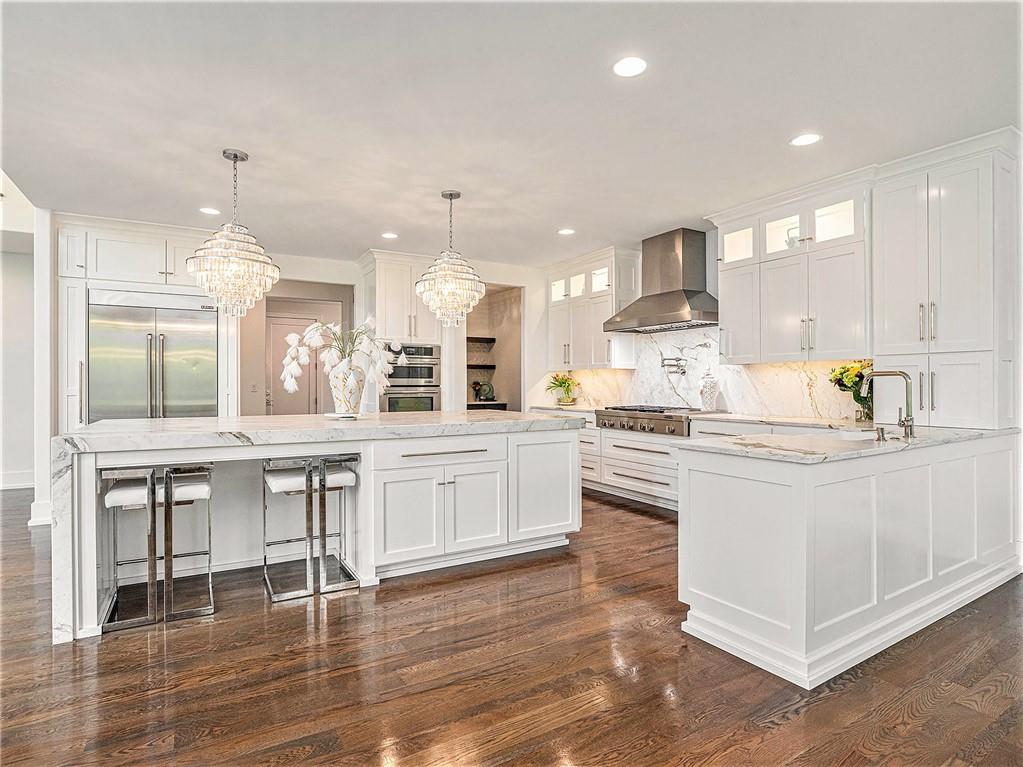 STUNNING. ELEGANT. EXTRAORDINARY. This nearly new Timber Rock Community showpiece is a true custom luxury build! A grand dual staircase and 3-tier custom crystal chandelier set the tone the moment you walk in, leading into a modern, light-filled living area with an 8-by-18-foot porcelain marble feature wall and a breathtaking 2-tier crystal chandelier. The chef-inspired kitchen is an entertainer’s dream, with a 5x10 leathered granite island, JennAir Pro appliances, a separate prep kitchen, and a huge pantry flowing seamlessly to an oversized crystal-lit dining area and covered lanai with a stone fireplace—perfect for unforgettable dinner parties, game days, and holidays. Your main-floor primary retreat feels like a five-star spa, offering an indulgent bath with oversized dual shower, soaking tub, and an expansive custom closet. Exquisite tilework, custom dual vanities, 5-foot circular mirrors, and crystal chandeliers create a jaw-dropping sanctuary, completed by a large 3-tier closet with two built-in chests. Upstairs, three spacious bedrooms with designer accent wallpaper—each with its own ensuite bath—ensure every guest or family member enjoys a private, boutique-hotel experience. The newly finished lower level is an entertainer’s paradise, with a wide-open living area, dedicated dining space, and a wet bar, all illuminated by a wall of windows overlooking green space; two extra-large bedrooms (ideal for an exercise room or private office) share a beautifully tiled full bath, and a generous wine room becomes the centerpiece for tastings and celebrations. Sliding doors lead to a large patio and lush green space expanding your living area outdoors, ideal for morning coffee and casual evenings. An oversized angled 4-car garage, large mudroom, and extra-spacious laundry loaded with custom cabinets and counters provide the everyday functionality that makes luxury living effortless. Buyer’s agent to verify square footage, schools, and taxes.