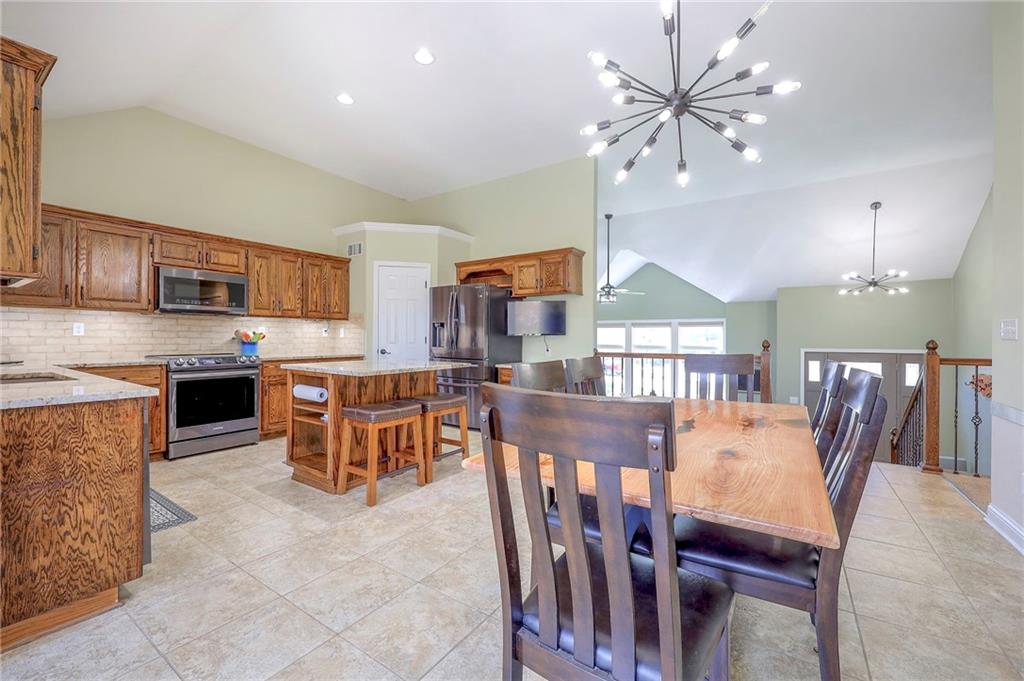 STUNNING RESORT-STYLE LIVING! Tucked away on a quiet cul-de-sac in the top-rated Mill Valley/De Soto School District, this meticulously maintained 4BR/3BA home is the ultimate retreat. The light-filled open floor plan shines with a granite kitchen and high-end finishes throughout, and all appliances stay for a truly move-in ready experience. Escape to your private backyard oasis featuring a heated inground pool, outdoor shower, changing area, and Trex covered deck surrounded by lush, mature landscaping. The massive 4-car heated/cooled garage is a hobbyist’s dream with direct backyard access. Finished lower level offers a family room, game room, and flexible office/gym space. Newer lighting, built-in closet systems in every room, and neighborhood pool/park access. This is the one you’ve been waiting for! Located just minutes from shopping, dining, and major highways, this home combines comfort, space, and an unbeatable location.