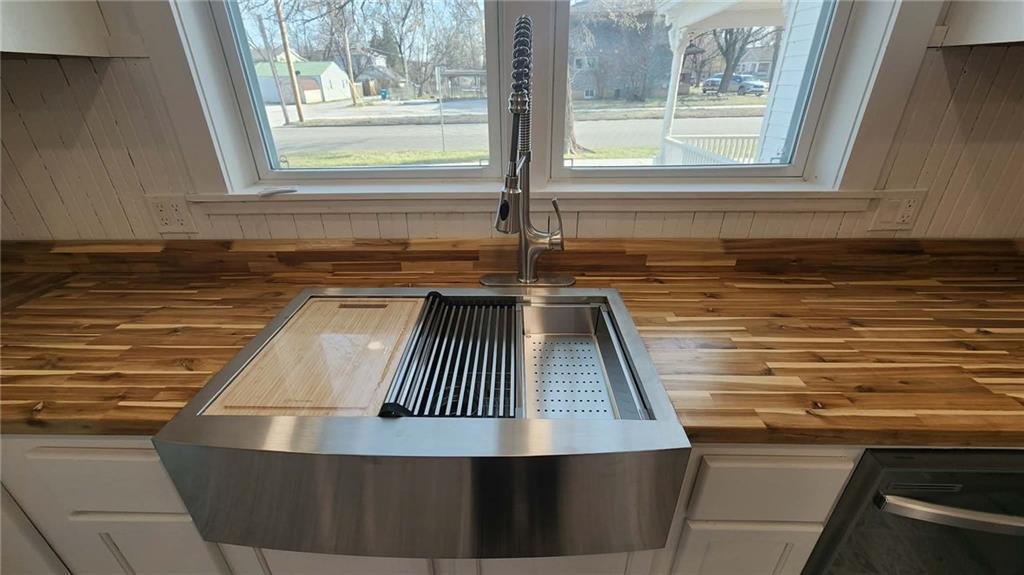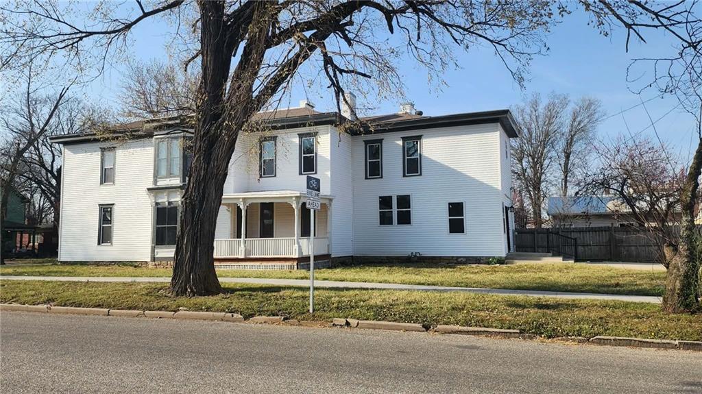 Step into everyday vacation living in this stunning turn-of-the-century retreat! Rich with character, the home features exquisite handcrafted woodwork, leaded windows, and beautiful original fireplaces that anchor the main living spaces. Thoughtfully preserved charm blends seamlessly with modern updates for comfort and efficiency. Enjoy flexible living and entertaining with spacious, connected rooms, a cozy reading porch, and a chef’s kitchen complete with butcher block countertops, stainless steel appliances, and stylish finishes. Upstairs offers generous bedrooms with updated features while maintaining original detail, along with spa-inspired bathrooms designed for relaxation. Located in Fort Scott’s historic district, this property offers endless possibilities—whether as a personal residence, Airbnb, or unique business space.