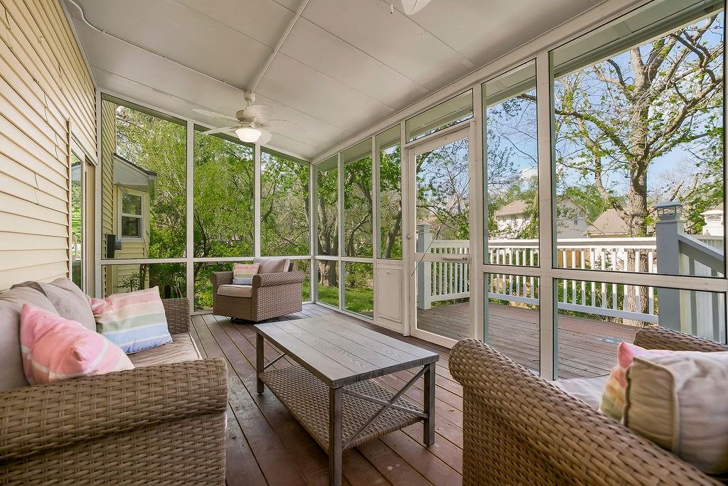 Coming Soon! Tucked on a quiet cul-de-sac with a rare 1/3 acre lot, this updated two-story home offers the space, layout, and outdoor living buyers are actively searching for in Olathe. Inside, hardwood floors run throughout the main and second levels, creating a cohesive and elevated feel across multiple living areas designed for both everyday living and entertaining. The kitchen features granite countertops, custom cabinetry, a farmhouse sink, pantry, and included appliances, while adjacent spaces include a fireplace, built-ins, and a dedicated dining area with detailed ceiling design. One of the standout features is the professionally built, permitted screened-in porch, offering a true extension of the home and a place to enjoy the outdoors in comfort. Just beyond, an additional grilling deck overlooks the expansive, pie-shaped backyard, providing privacy, flexibility, and room to grow. Upstairs, all four bedrooms feature hardwood flooring, including a spacious primary suite with a refinished clawfoot tub, rain shower, double vanity, and walk-in closet with cedar shelving. A second full bathroom serves the remaining bedrooms, while the unfinished basement offers storage or future finishing potential. The oversized two-car garage includes an EV charger, and the home has seen key updates over time, supporting both functionality and long-term value. Positioned on a cul-de-sac with limited through traffic, this property offers a balance of space, updates, and location that stands out in today’s market.