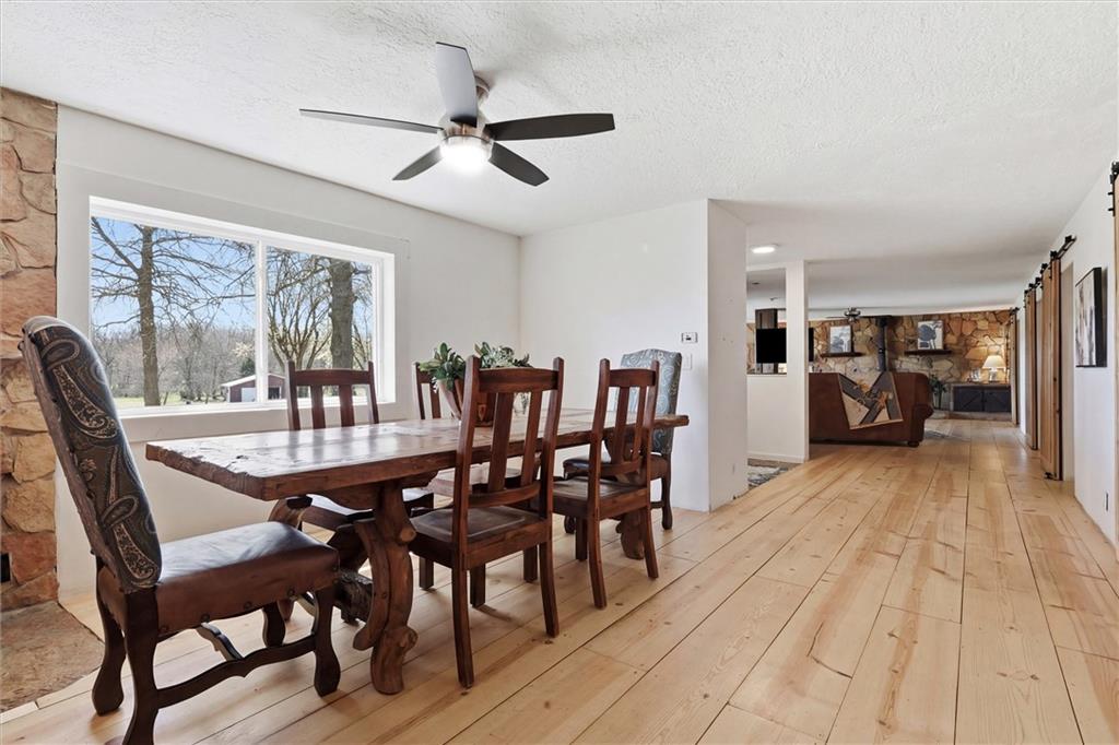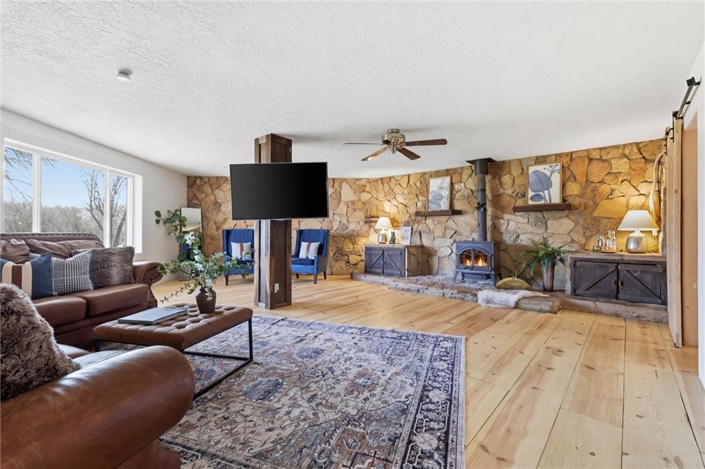 Escape to Privacy! This almost 2800 sq foot ranch style home sits on a dead end road on nearly 20 acres for all your outside enjoyment. Private duck, pheasant, turkey and deer hunting, farming, homesteading, swimming in the running waters of Walnut Creek or fishing in the pond, turkeys gobbling and bluffs. it all can be yours! Sit outside on your expansive patio, swing from a tire swing or go for a walk on the trails. It’s a true escape from the world. This home has been largely remodeled and is ready for your continued ideas and further renovations. New heat/air, new floors, and new doors inside and out welcome you inside. Wide open spaces with all main floor living. 2 large family rooms, 4 bedrooms and 2 full baths. 6 minutes to town and 1/4 mile from blacktop roads. Large barn with water and electricity and partial concrete or gravel floors. Get moved in before summer is here! Be sure to watch the video!