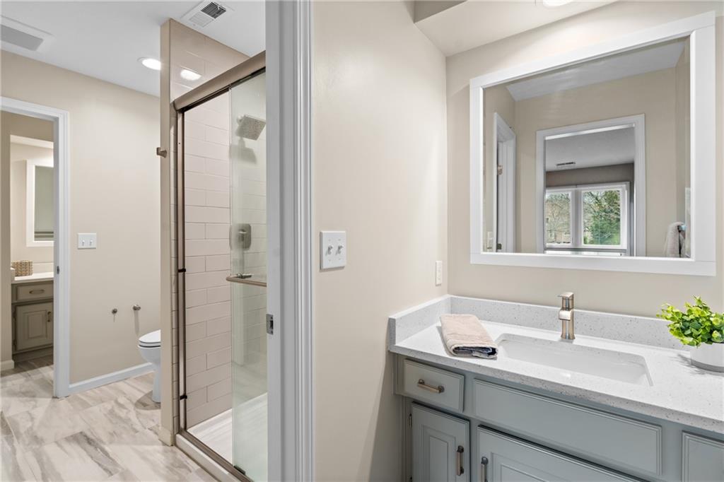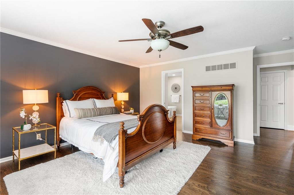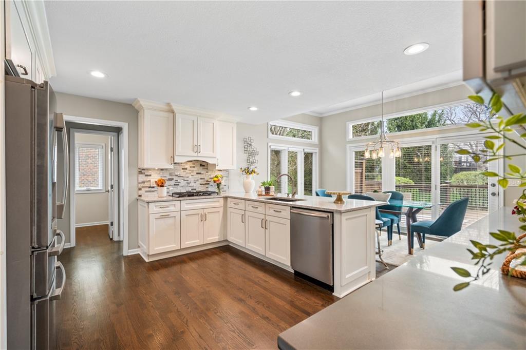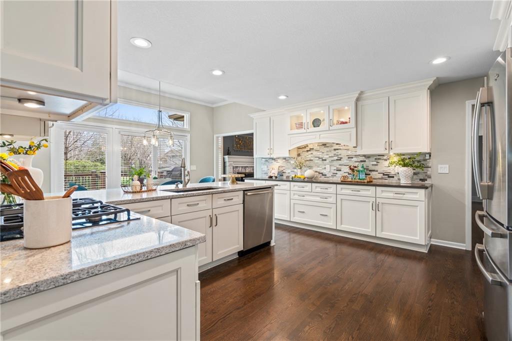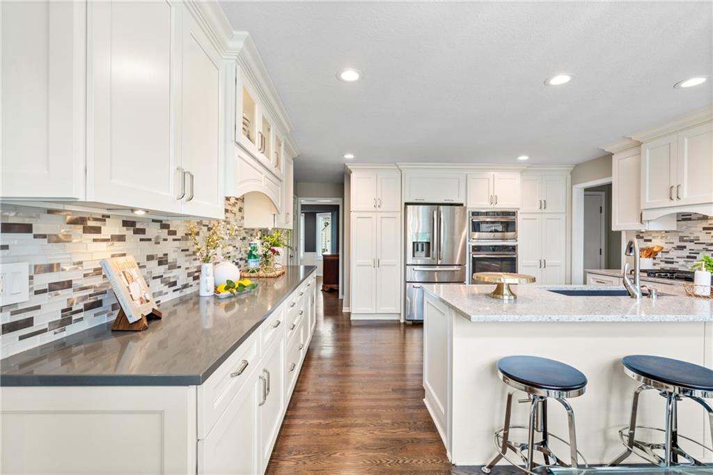 Tucked on a cul-de-sac in Highlands of Leawood-this one hits different. Fully reimagined 1.5 story with spa level primary suite, zero entry shower, vessel tub, Cambria quartz counters, showpiece kitchen with custom cabinetry, quartz counters and designer lighting. Hardwoods on main floor with all new carpet upstairs, walk up basement, new windows, paint, oversized deck and patio and backyard with a walking trail close by. Sellers are getting a $40,000 new roof due to recent hail storm. Move in and enjoy Tasteful Luxury!