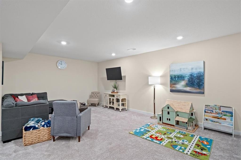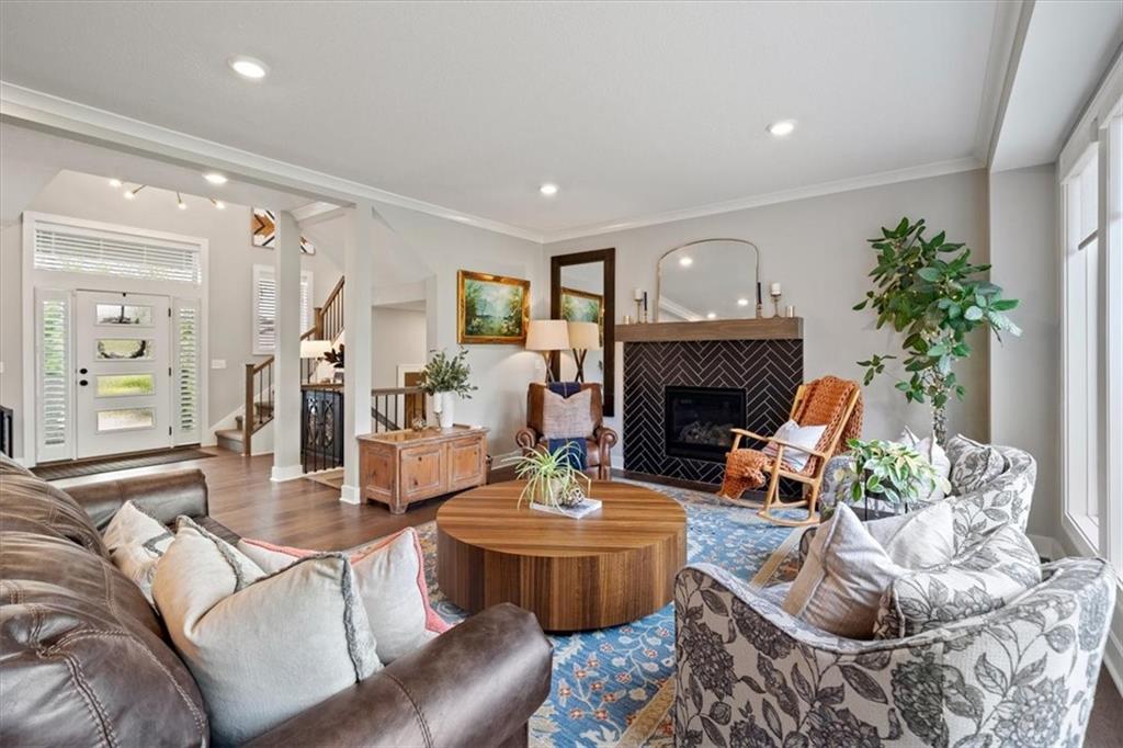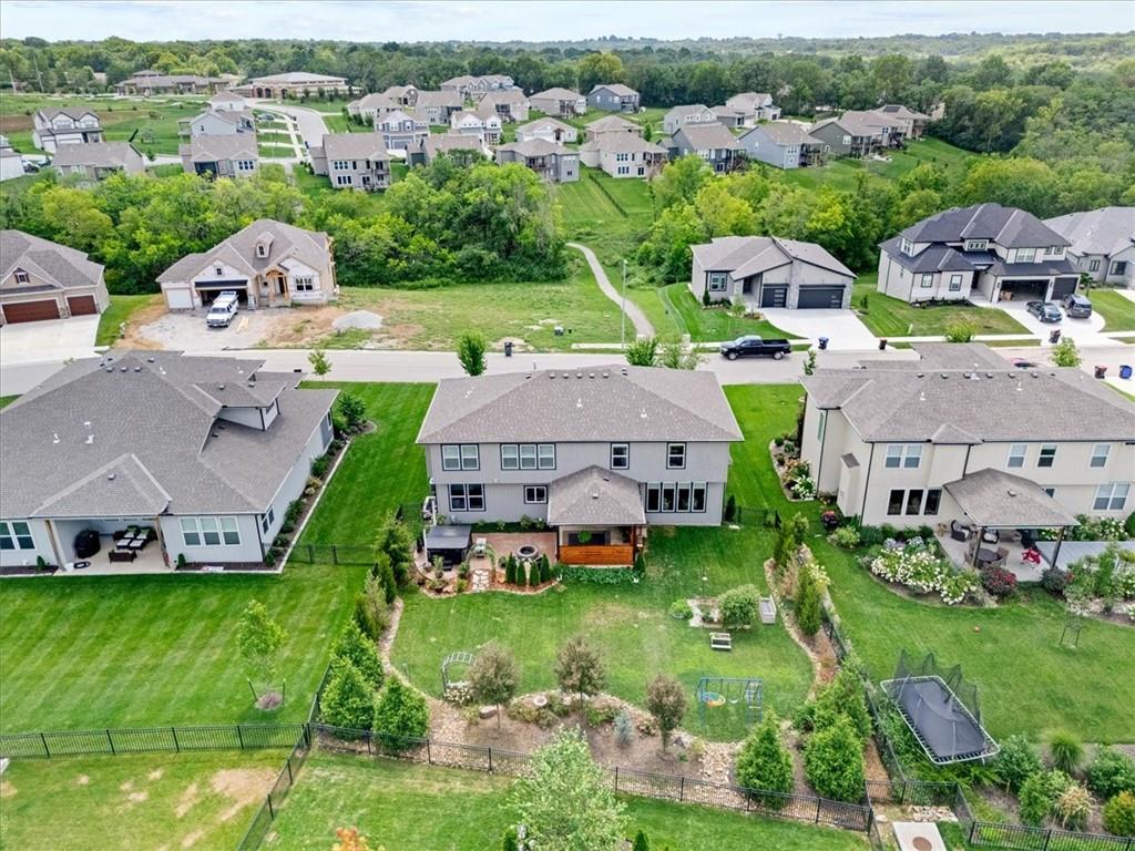 Welcome Home! Big Price improvement! Move right in instead of waiting 9 months to build! This 2 story home is better than new! Located in the coveted Reserve at Woodside Ridge, it has everything you need. 6 bedrooms 5 full bathrooms! Over 4100 sq ft of high end finishes with a mix of classic and modern. Large gourmet kitchen has a huge island, built in gas cooktop and an oversized walk in panty. Guest room or flex room on main floor makes a perfect home office, play room, or Mother In Law suite including a full bathroom. Mudroom off garage is perfect place to drop the kid's bookbags. Huge master suite upstairs has an extra sitting room with a private fireplace. Spa like master bathroom has his and hers vanities and his and hers walk in closets! Large Laundry room with prep station and built ins is upstairs by the master bedroom. Finished basement offers a large living room, a full bathroom and a 6th conforming bedroom! 4 bedrooms upstairs, one bedroom on main floor, and one in basement. Lots of fun trim accent walls sprinkled throughout the home. Outside has beautiful professional landscaping and a private covered porch, stamped concrete patio and firepit. Seller has invested over $80,000 of upgrades in the last 2 years. The Reserve at Woodside Ridge offers a convenient location to highway access, shopping centers, and the Rock Island Trail. So many amenities! Club house, pool with slide, pickleball court, and a playground area! HOA dues include trash, recycling, and paved walking trails! The walking trails are directly across the street from this home for easy access. Top rated Lee's Summit schools!