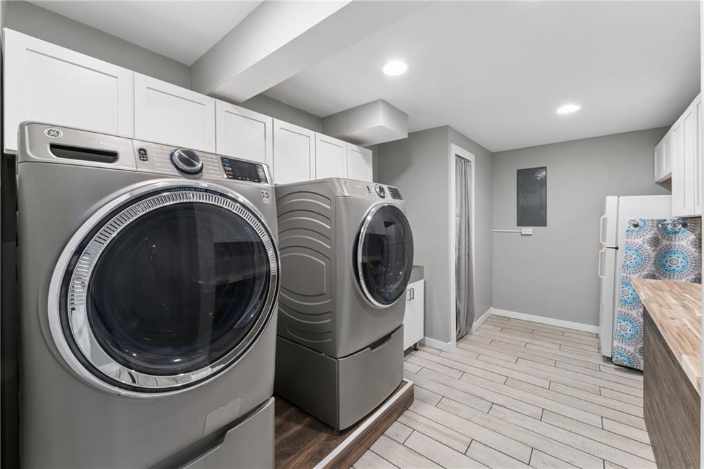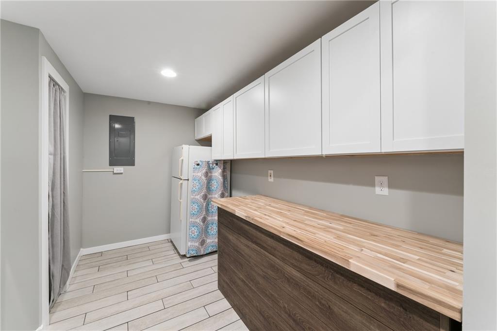 Stunning, updated multi-level home offering space, style, and incredible versatility! This beautifully refreshed property features new flooring in all bedrooms, a stylish kitchen with updated backsplash, and thoughtfully renovated spaces throughout. The redesigned laundry room is a true standout—complete with front-loading washer and dryer, folding station, utility sink, and even a beverage refrigerator for added convenience. The finished basement expands your living options with a dedicated workshop area and a fully remodeled space featuring beautiful ceramic tile and fresh paint—perfect as a second family room, recreation area, or a conforming fifth bedroom with egress window and closet. Enjoy multiple living areas, including a spacious family room with a cozy fireplace and a bright living room highlighted by a charming bay type window. Outdoor living is just as impressive with both a large rear deck and an additional front deck—ideal for relaxing or entertaining. Nestled in a highly desirable, tree-lined neighborhood, this home offers generous spaces and flexible living options to fit a variety of lifestyles. A rare find that truly has it all!