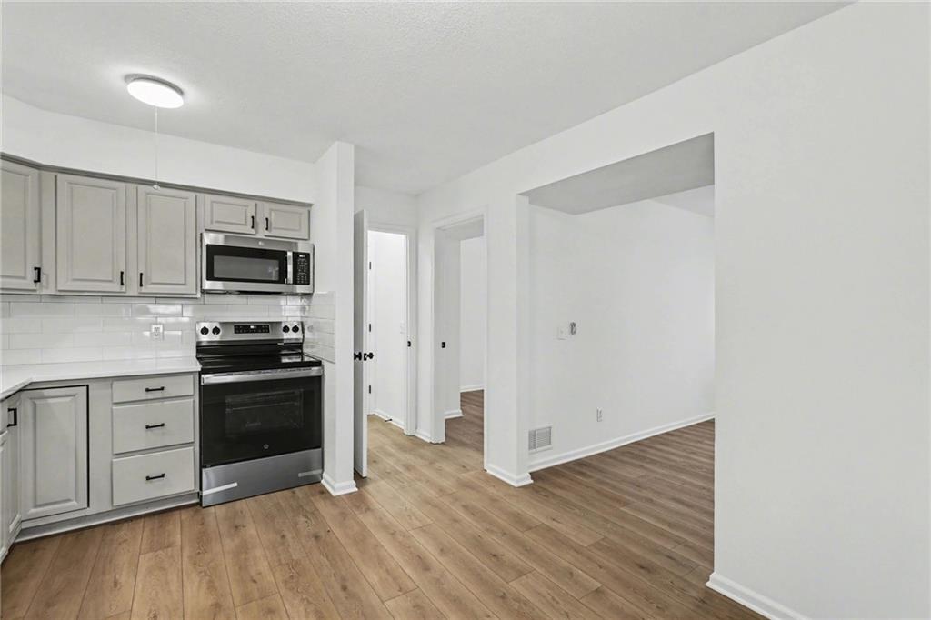 This beautifully updated 1.5-story townhome offers the perfect blend of style, comfort, and location. As an end unit, you’ll enjoy added privacy and natural light. Start your mornings on the covered front patio, coffee in hand, taking in the charm of the neighborhood. The exterior features fresh asphalt off-street parking and classic brick with vinyl siding for timeless curb appeal. Step inside to find durable laminate flooring and a neutral color palette that makes decorating effortless. The spacious living room includes a conveniently located laundry closet and flows seamlessly into the kitchen. The fully remodeled kitchen shines with brand-new stainless steel appliances, freshly painted cabinetry, quartz countertops, and space for a cozy breakfast table. A formal dining area sits just off the kitchen and includes a pantry closet for extra storage. The main level also features a bedroom and a full bath, ideal for guests or flexible living. Upstairs, you’ll find two generously sized bedrooms and a beautifully updated half bath. Located in the heart of Downtown Smithville, you’re within walking distance to Heritage Park and the Square, offering boutique shopping, local restaurants, and coffee spots. Just minutes from Smithville Lake for boating, fishing, and outdoor fun, and only 20 minutes to KCI Airport, the convenience truly can’t be beat. Move-in ready and completely refreshed, this one is ready to welcome its next owner.