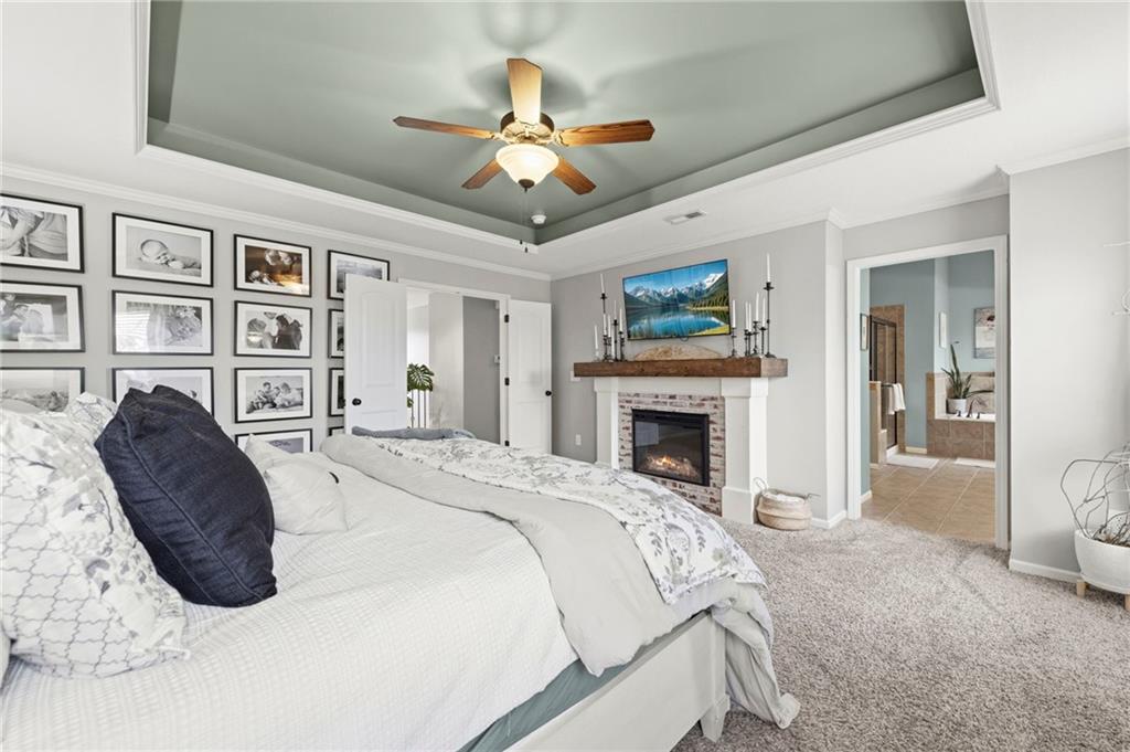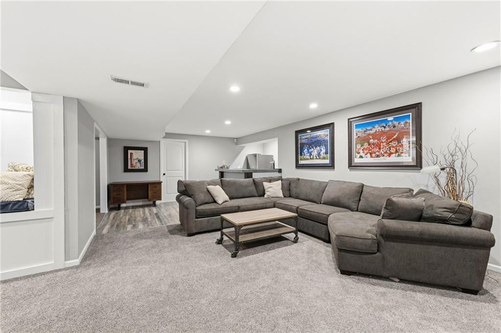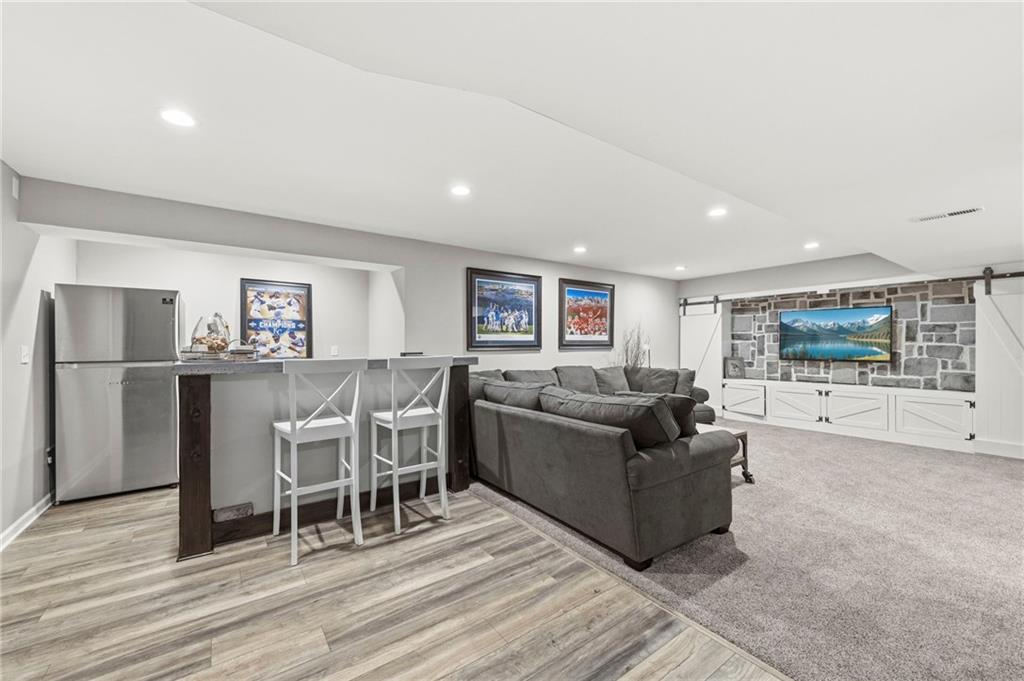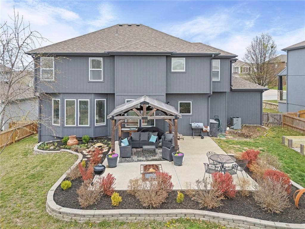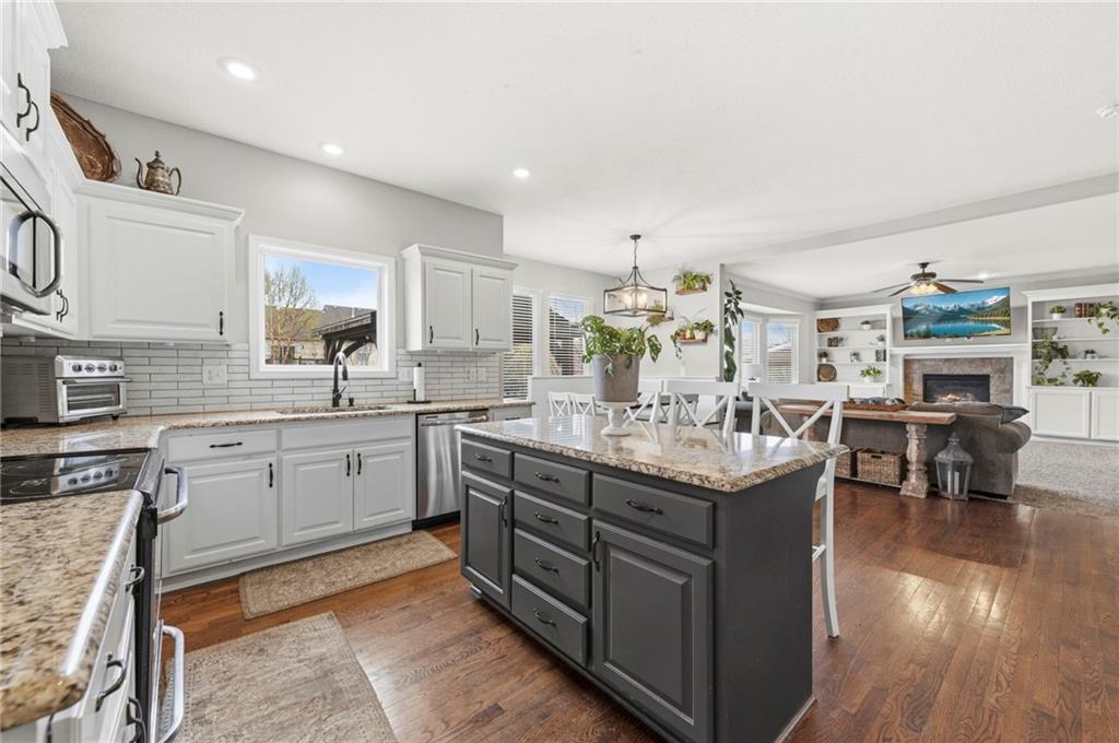 Open House Saturday, 4/18, 2p-5p. Why wait for a new build and pay more to get less? This 4-bedroom, 3.5-bath, 3-car garage home offers a spacious, open layout with ideal updates and is ready now! The beautifully updated kitchen features hardwood flooring, stainless steel appliances, granite countertops, an eat-in area with custom, built-in seating and table, and a large walk-in pantry. Just off the kitchen, enjoy a bright living room with fireplace and custom built-ins, plus a versatile dining room or office and convenient half bath. Upstairs, you’ll find the incredible primary suite featuring large ensuite and massive closet. Down the hall there are three additional bedrooms, a jack-and-jill bath, an additional full bath, and the convenience of second-floor laundry! The finished basement provides excellent additional living space with a bar area, under-stair play nook, a non-conforming bedroom or flex room, and plenty of storage space w/egress window. Step outside to a level backyard with mature landscaping and plenty of room for entertaining. Located just a short walk from neighborhood amenities including the pool, park, walking trails, and Lake Olathe. To make this even better, the roof and mechanicals are nearly new as well! A true full-package home—don’t miss it! Be sure to check out the virtual tour to fully appreciate the layout and space. Schedule your showing today.