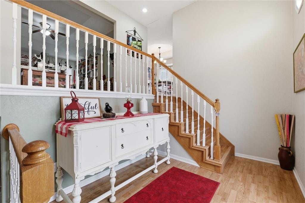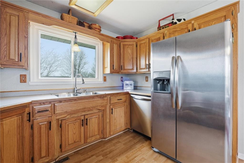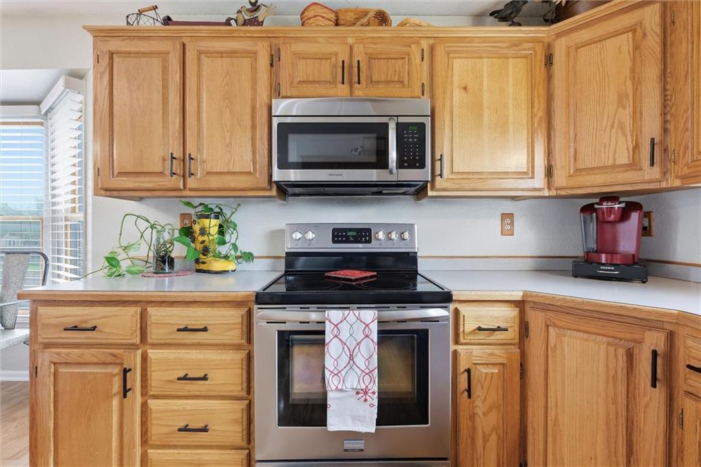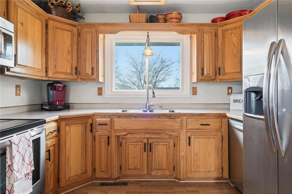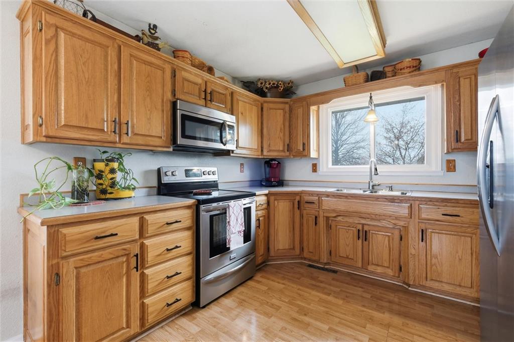 Welcome home to this meticulously maintained 3 bedroom, 3 bath brick-front split-level that truly has it all. From the moment you walk in, you’ll notice the soaring vaulted ceilings and the bright, open layout that seamlessly connects the kitchen and dining area—perfect for both everyday living and entertaining. The main floor features a spacious great room with a cozy fireplace, while the lower-level family/rec room offers endless possibilities—whether you need a second living space, home office, gym, or playroom. The oversized primary suite provides the space and comfort you’ve been looking for, and the kitchen is ready for everything from quiet mornings to hosting friends and family. Step outside to a fully fenced backyard with an incredible patio—ideal for entertaining, tossing a ball around, or just kicking back and relaxing after a long day. Located in a quiet neighborhood near a cul-de-sac with quick access to I-35, this home combines convenience with a peaceful setting. You’re also within walking distance to the city park—and yes, there’s even a dog park your four-legged family members will love. Additional highlights include an energy-efficient all-electric setup and a spacious 26x24 attached garage. If you’ve been searching for space, comfort, and a home that’s been truly cared for—this one checks all the boxes.