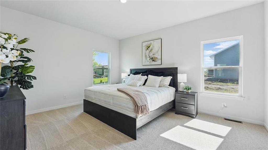 Welcome to Prairie Trace, where modern design meets timeless elegance in this exceptional home crafted by D.R. Horton, “America’s Builder.” THE HARMONY... This home stands out with James Hardie® siding and stone and shake shingle accents, providing both durability and timeless curb appeal. You'll be greeted with a three-rail, two-panel insulated front door that enhances both curb appeal and energy efficiency. Step inside to find a beautifully appointed interior with 9-foot ceilings that exude sophistication. The chef’s kitchen is the heart of the home, featuring 36-inch painted maple cabinets, quartz countertops, and state-of-the-art Whirlpool® stainless steel appliances. Bathrooms feature quartz-topped vanities and Moen® chrome faucets. The primary bath offers a 5-foot shower with a framed glass enclosure. This home is designed for the future with advanced Smart Home technology, including a Honeywell® Pro Z-Wave® Thermostat, Amazon Echo, and a connected home panel, allowing you to control and monitor your home from anywhere. Energy efficiency is prioritized with LED lighting throughout, a high-efficiency gas furnace, and insulated low E vinyl windows, ensuring comfort and savings year-round. Additional features such as luxury vinyl plank flooring, a spacious garage with opener(s), and detailed wiring solutions like dual data/TV lines in the main bedroom and family room, enhance both convenience and style. D.R. Horton’s commitment to quality is evident in every aspect of this home, offering you a place where luxury, technology, and comfort come together seamlessly. Don’t miss your chance to own this extraordinary home in Prairie Trace. Schedule your private tour today and experience the D.R. Horton difference!