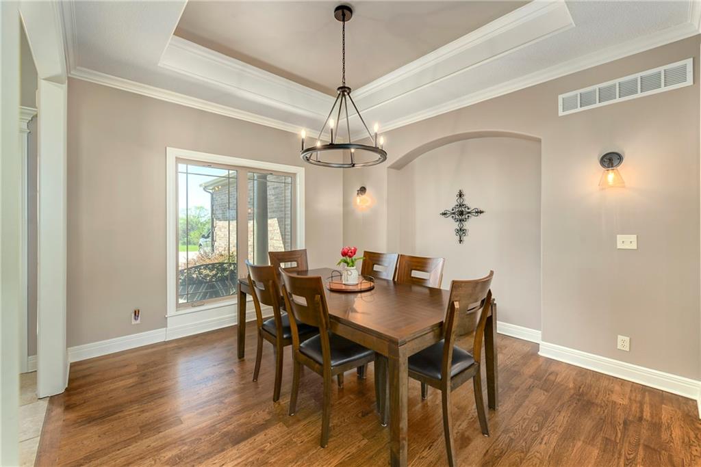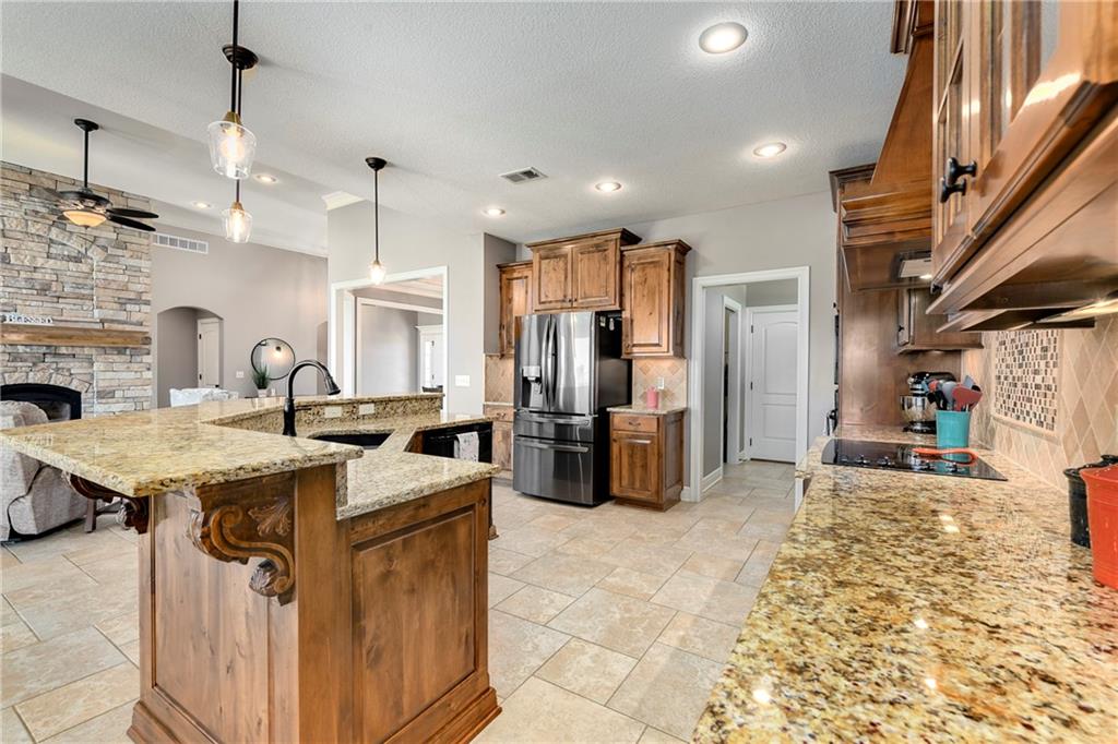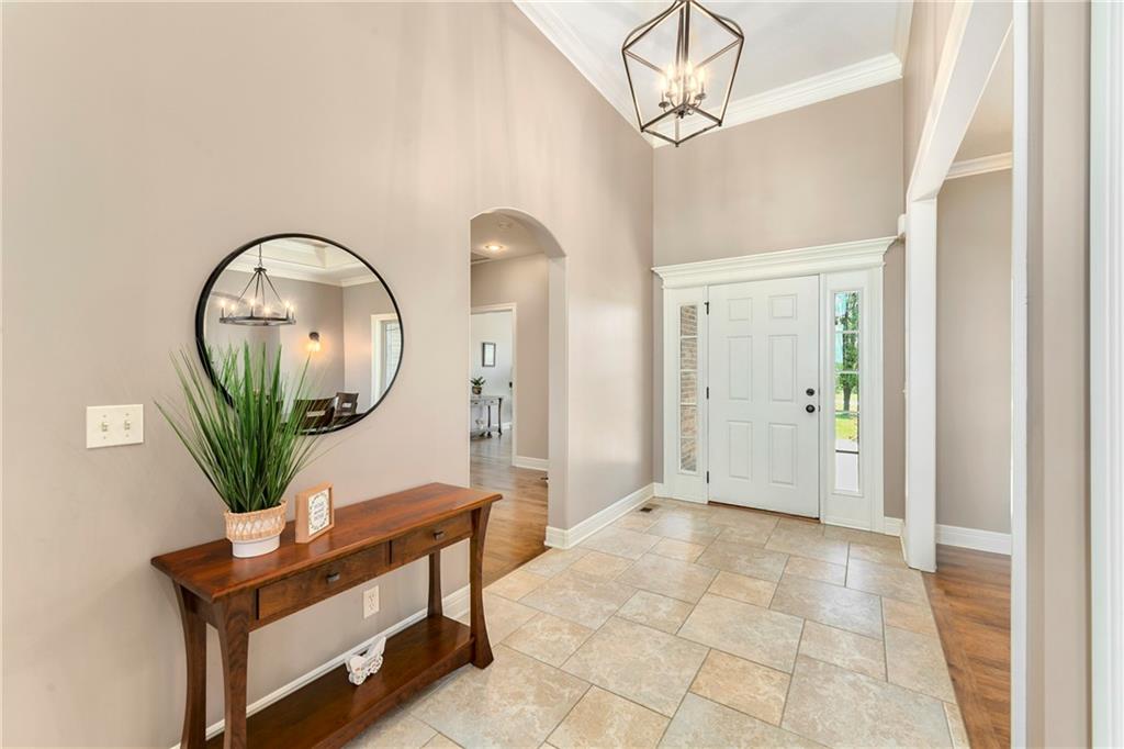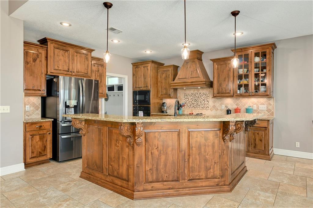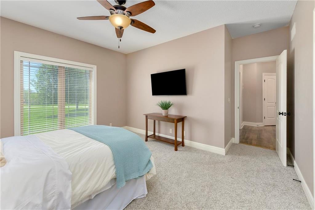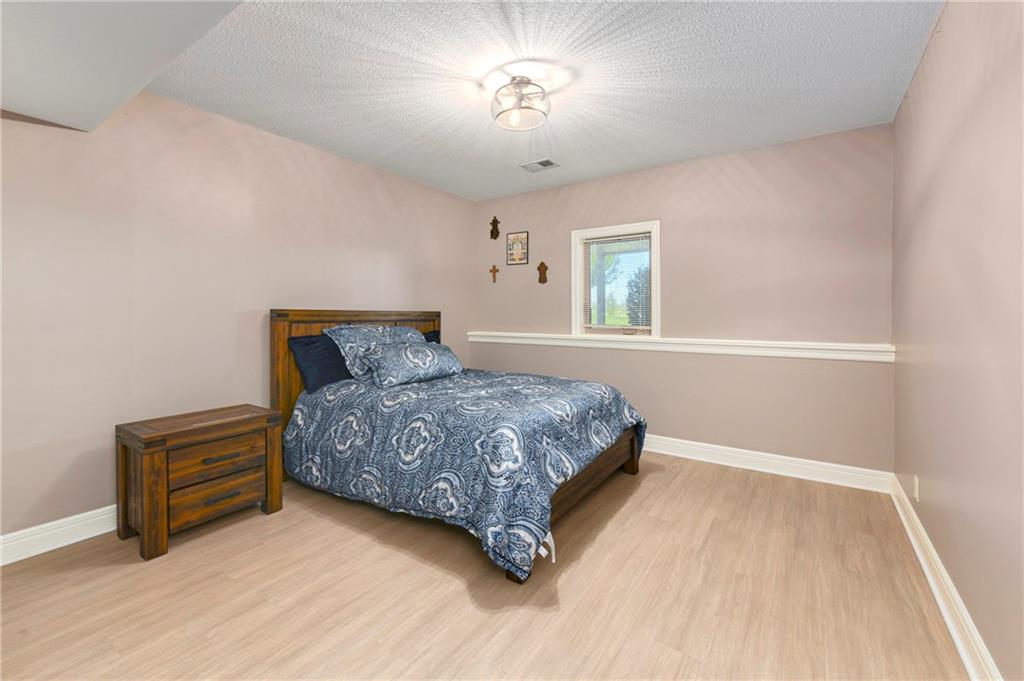 This stunning custom-built all-brick ranch sits majestically atop a hill, offering breathtaking views and the perfect blend of luxury and functionality. Designed for true main-level living, the home features three spacious bedrooms on the main floor. Two secondary bedrooms provide excellent flexibility for guests, family, or a home office—complete with abundant natural light and beautiful wood flooring. The expansive primary suite is a true retreat, easily accommodating large furniture and complemented by a spa-like ensuite featuring a walk-in shower, jetted soaking tub, double vanities, and an impressive walk-in closet. Enjoy both formal and casual living with a dedicated dining room and an open-concept kitchen equipped with a cooktop, granite countertops, stained wood cabinetry, and a large pantry. The kitchen flows seamlessly into the great room, where a striking stone fireplace and walls of windows showcase the property’s scenic surroundings. An enclosed four-season sunroom extends the living space, perfect for relaxing or entertaining year-round. Additional main-level conveniences include a drop zone off the garage, and a second laundry option in the pantry. The partially finished walk-out basement adds even more versatility with a fourth bedroom, full bathroom, family room, and a second laundry area. There is ample opportunity to expand, with space for two additional bedrooms and a fourth bathroom—featuring daylight windows for added comfort and value. Outside, the property truly shines with approximately 12 acres of agricultural land, plus an additional 2 acres surrounding the home. A massive 2,900 sq ft utility building includes solar power that saves tons on utility bills, ideal for a variety of uses. The property is fully fenced and secured with a grand electric entry gate. Enjoy the best of both worlds—peaceful country living with a prime location offering convenient access to everything the Kansas City area has to offer.