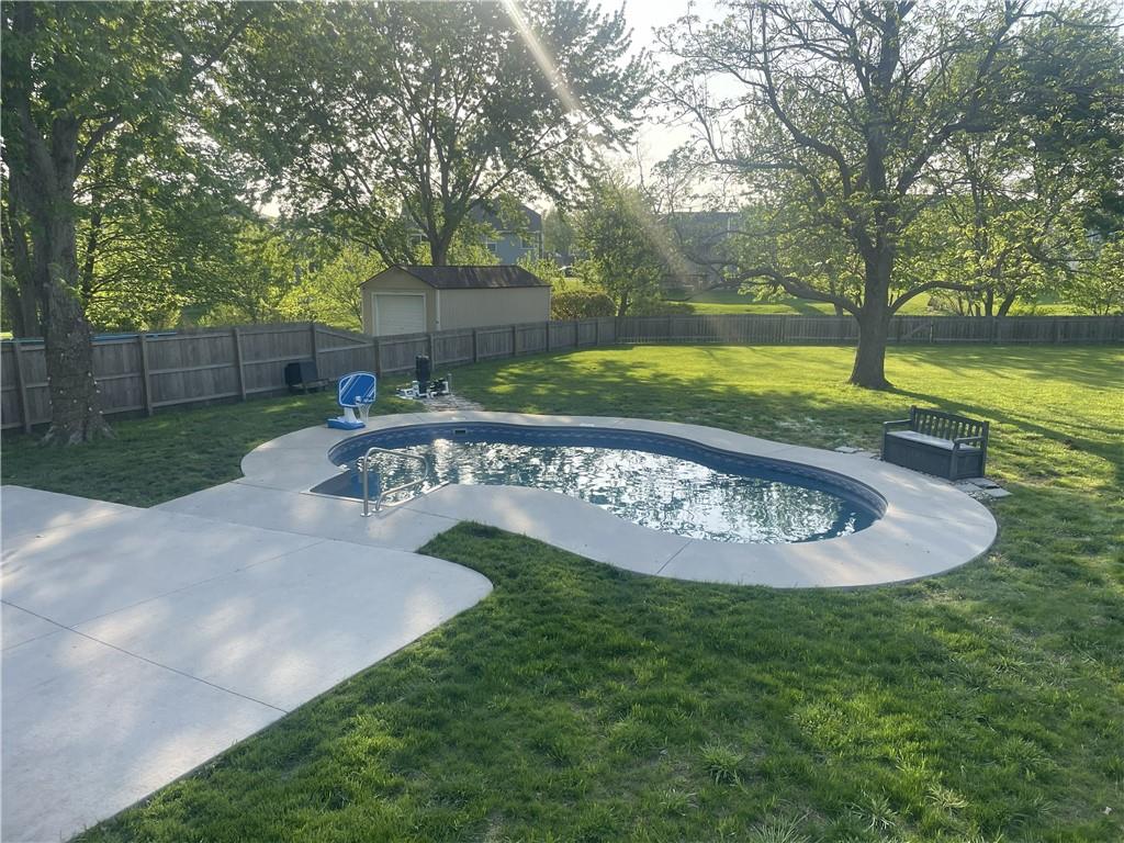Welcome home to this beautifully maintained raised ranch in Raymore! From the moment you arrive, you’ll be charmed by the inviting covered front porch and standout curb appeal. Inside, this 3-bedroom, 2.5-bath home offers a seamless flow from the entry into the kitchen and spacious great room, complete with a cozy fireplace—perfect for both everyday living and entertaining. Stylish touches like wainscoting along the hallway add character, while the expansive layout continues with a unique loft space above the master featuring hardwood floors—ideal for a home office, reading nook, or flex space. Step outside and fall in love with your private backyard retreat! The full-length deck spans the entire back of the home and includes direct access from the primary suite—perfect for morning coffee or unwinding in the evening. The patio leads to a stunning 3-year-old in-ground pool, creating the ultimate setup for summer entertaining. All of this sits on a large, fenced lot offering both space and privacy. This home truly has it all—style, function, and an outdoor oasis you won’t want to miss!