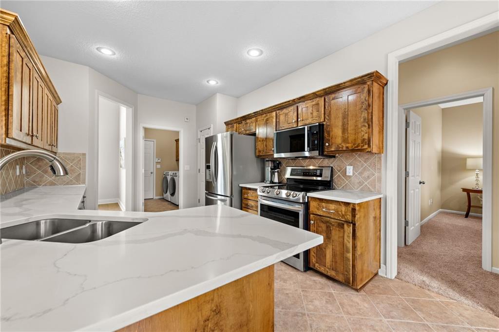 Quality custom construction on a private 1-acre lot backing to trees. This well-maintained home offers a functional layout with numerous upgrades throughout. NEW roof and gutters, NEW quartz countertops in the kitchen and primary bathroom. Beautiful NEW wood floors in the living room and dining room. Other features include stainless steel appliances, custom-built-ins, arched windows, high ceilings, bullnose corners, vaulted ceiling details, and additional recessed lighting. The walkout basement provides an excellent opportunity for future finish, complete with a garage bay door, 10-foot ceilings, and a bathroom rough-in. Exterior improvements include professional retaining walls and established landscaping. Enjoy the elevated deck overlooking a wooded hillside with no neighboring homes directly behind. PRE INSPECTION has been completed, and the home is exceptionally clean and shows very well. Conveniently located with easy access to local schools and amenities, making it a natural place to gather and connect. Schedule your showing today!