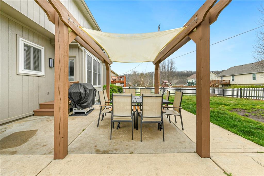 If you’ve been searching for a home that actually fits your life, not just your budget, this is where your story starts. Located in Whispering Hills, this 5-bedroom, 3.5-bath home gives you the space, layout, and flexibility most buyers struggle to find. With over 2,300 square feet above grade plus a finished basement, you finally have room for everything. Work from home, host gatherings, or give everyone their own space without feeling cramped. From the moment you walk in, the tall ceilings and natural light create a sense of openness. The front flex space works perfectly as a home office or formal dining area, while the living room with fireplace flows seamlessly into the kitchen and dining area. It is the kind of layout that makes everyday living easier and entertaining natural. The kitchen is positioned as the hub of the home, with plenty of cabinet space and a clear view of the dining area and backyard. Upstairs, the primary suite gives you a private retreat with a large bedroom, en suite bath, and walk-in closet. Downstairs, the finished basement expands your options even further. Whether it becomes a second living area, guest space, gym, or playroom, it gives you flexibility that adapts to your needs over time. Step outside and you will find a fully fenced backyard with a patio and pergola. This is where weekends happen. Cookouts, quiet evenings, or letting pets and kids play freely. The lot size offers usable space without overwhelming maintenance. The 3-car garage solves another common problem. Storage, vehicles, and hobbies all have a place. Located in a quiet neighborhood with easy access to Fort Leavenworth, this home checks the boxes that matter most for relocation buyers and anyone needing space and functionality. If you have been waiting for the right home that balances space, layout, and location, this is your opportunity. Schedule your showing today and step into a home designed to support your next chapter.