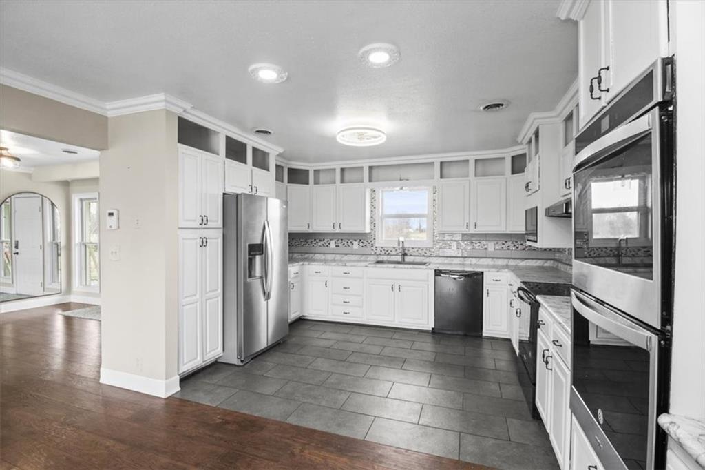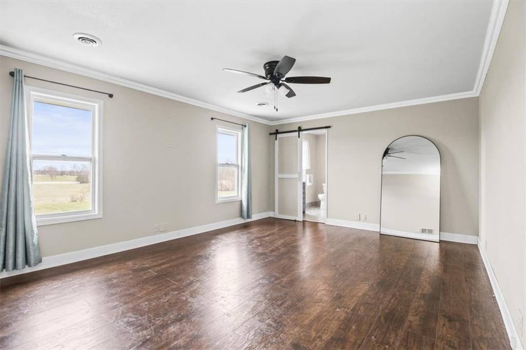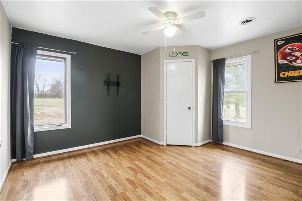 Set on 24 beautiful acres, with private drive and gated entry, this property is ready for your livestock and your lifestyle. This gorgeous home is out of city, unincorporated Oak Grove offering low property taxes under $3300/year. Fully fenced and cross-fenced, the land is thoughtfully divided into five separate pastures making it perfect for rotating cattle or horses. A newer 30x40 shop features a concrete floor, 200-amp service, and an exhaust fan, while a second barn offers wood flooring, electricity, and a loft for additional storage. You’ll also find two loafing sheds with stalls, along with two stocked ponds ready for your enjoyment! This home is positioned perfectly in the center of the acreage, offering 4 bedrooms, 2 bathrooms, along with an office/mudroom with peaceful views and stunning sunsets. You'll love the beautiful flooring throughout with a unique sunken living room surrounded by newly updated handrails with rod irons. All rooms are spacious with walk-in closets in every bedroom. Major updates have already been taken care of, including a new deck and extended patio, fully renovated bathrooms, new light fixtures, updated kitchen with new countertops, backsplash, sink, faucet, painted cabinetry, and double ovens. Additional improvements include fresh interior and exterior paint, eight newer windows, updated flooring, and upgraded trim with 6” baseboards in most of the home. New septic system less than a year old, the roof, furnace, and A/C are all 8 years old. This is a rare opportunity to own a turn-key acreage home out of city, off black top with the space, setup, and updates already in place.