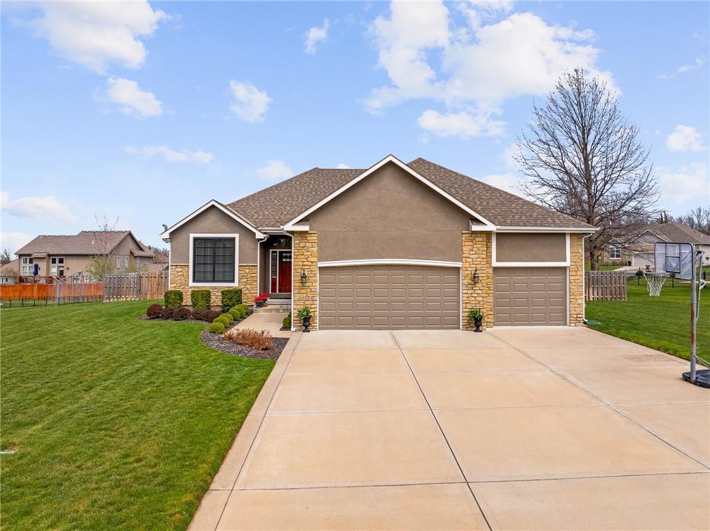 A rare opportunity in the highly desirable Piper area—this custom-built ranch offers the perfect blend of style, space, and functionality with 5 true bedrooms and thoughtfully designed living spaces throughout. From the moment you enter, you’ll appreciate the warm elegance of hardwood floors that flow through the entry and into the kitchen, setting the tone for the home’s quality craftsmanship. The open layout is both inviting and practical, ideal for everyday living and entertaining alike. The spacious primary suite serves as a private retreat, complete with a generously sized walk-in closet and a well-appointed en-suite bath. Convenience is key with main-level laundry and a mudroom just off the 3-car garage—perfect for keeping life organized. The finished lower level expands your living space with a large family room and two additional bedrooms, each featuring walk-in closets, making it ideal for guests, hobbies, or multi-generational living. Step outside to a covered deck equipped with a ceiling fan—an ideal spot to relax and enjoy the outdoors in comfort. Additional highlights include granite countertops and beautifully finished ceramic tile bathrooms throughout. With its exceptional layout, quality finishes, and sought-after location, this home delivers comfort, space, and everyday livability all in one. Don’t miss your chance to make it yours.
