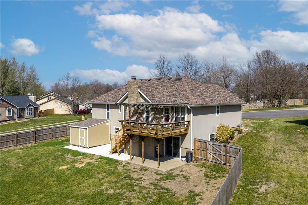 Welcome home! This beautiful home is ready for new memories! Situated on a large corner lot of a cul de sac, within a few minutes of shopping, restaurants, and 50 Hwy for commuting to Whiteman AFB or Kansas City. New wood-look LVP (sellers installed in 2025) runs throughout the main level spaces. The spacious Living Room showcases tall ceilings and a gas fireplace perfect for those chilly winter days. Off the living room is the Kitchen, Breakfast nook and a full Dining Room with lots of natural sunlight. The inviting Kitchen has ample wood cabinets with pantry, solid surface countertops, tile backsplash and stainless-steel appliances that all stay. The main level includes 2 secondary Bedrooms, hallway Bathroom with Laundry, the Primary Bedroom with 2 closets and en-suite Bathroom. Downstairs you will find the Family Room which could be used as second Primary Bedroom with a spacious walk-in closet, an en-suite Bathroom with double sinks and beautifully tiled shower with two shower heads. Head out the patio doors to enjoy time outdoors in the large, privacy fenced back yard (swing set can stay). There is an additional non-conforming room in the basement that would be perfect for an office, 5th bedroom, playroom, etc. You will appreciate the additional storage space in the garage as well as the EV charging station, built-in shelves and workspace. The back deck has new stairs leading down to the newly poured patio extension and storage shed, all added by sellers in 2024. Roof, gutters, and downspouts are just 2 years old! Don't miss out on this wonderful opportunity!
