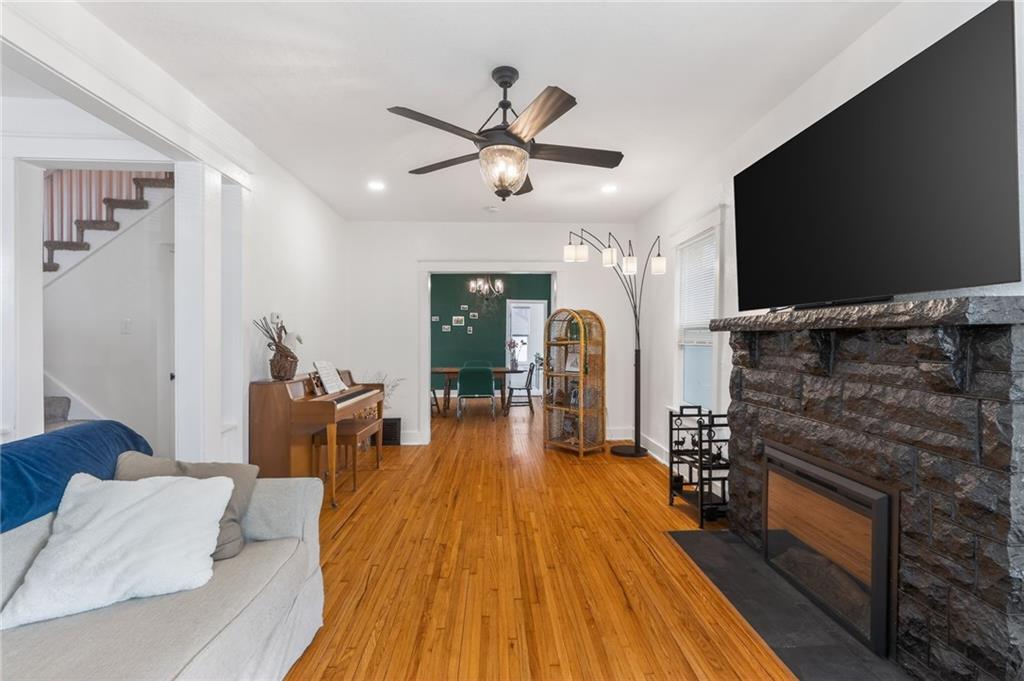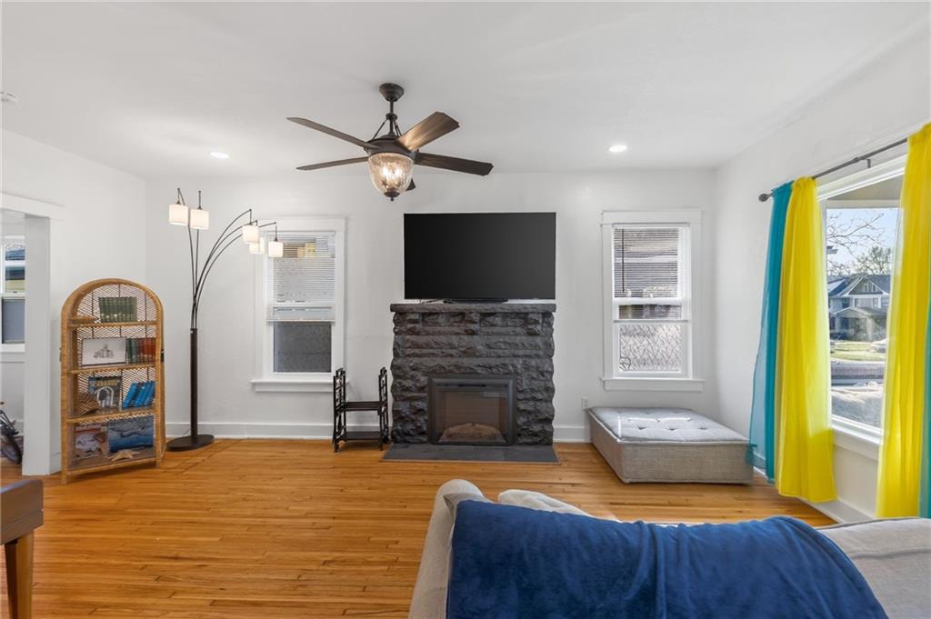 This charming two-story home in Santa Fe Place was fully redone within the last two years. The main floor features beautiful wood floors, an electric fireplace in the living room, and a renovated kitchen with a large island and stainless steel appliances. With three bedrooms and two full bathrooms, the layout is practical and includes a convenient main-level laundry room. Outside, you can enjoy the fresh air on the front porch or the back deck within the fenced yard. This property also includes a two-car detached garage, thermal windows for energy efficiency, and a full basement that provides plenty of extra storage space. Located in Kansas City, this move-in-ready home is perfect for anyone looking for a place to live or a great short term rental right before the World Cup.