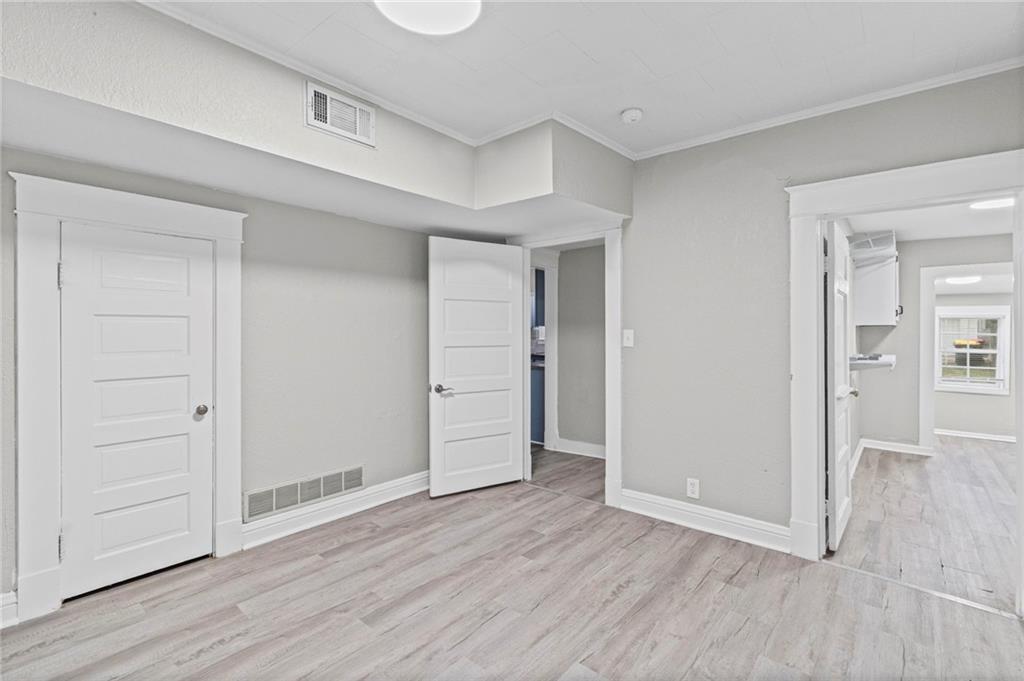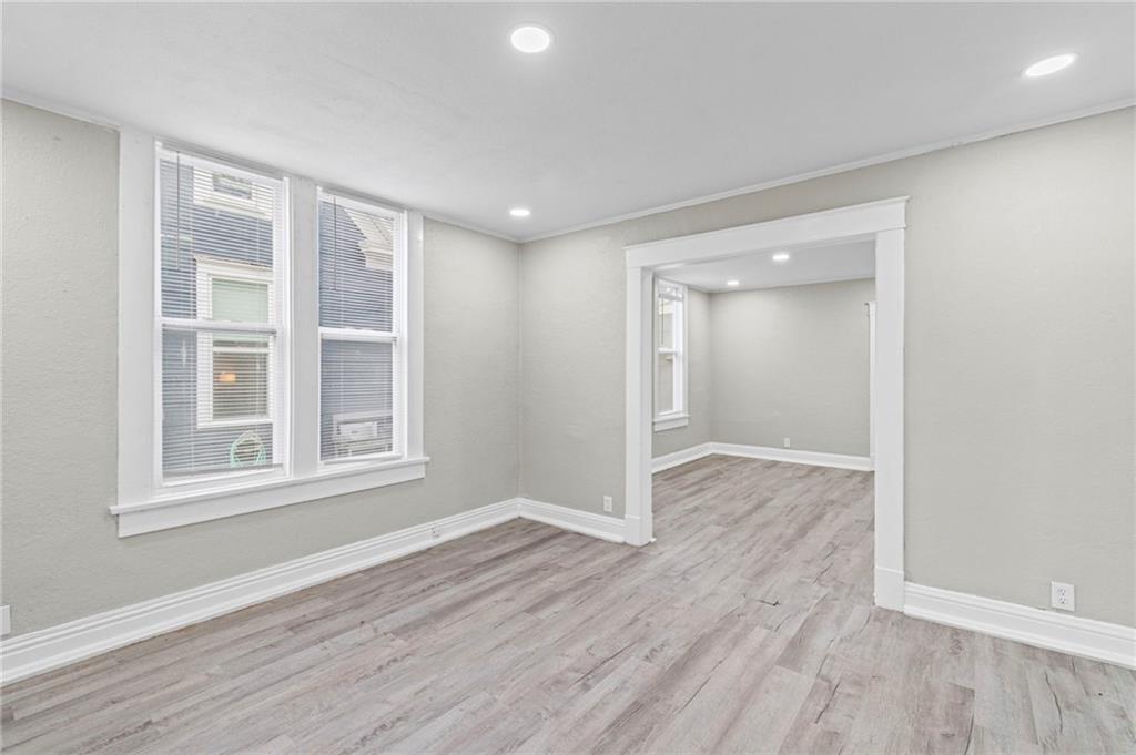 Step into the character and warmth of this 1920 single-family home, thoughtfully updated for modern living while keeping its timeless appeal. A welcoming front porch sets the tone, leading you into spacious rooms with vinyl plank flooring and plenty of natural light. This two-story home offers 4 bedrooms and 1 beautifully remodeled bathroom, with a layout that gives you options. The entire second floor can function as a generous primary suite or be divided into two bedrooms. One of the upstairs rooms is perfectly positioned to become a dream walk-in closet or even an additional bathroom—an excellent opportunity to add value and convenience. The remodeled kitchen blends classic charm with modern function, offering updated finishes and an efficient layout. Outside, the large backyard provides a quiet retreat away from the busy street out front, with alley access that adds flexibility for parking, storage, or future projects. With spacious rooms, thoughtful updates, and a yard that feels like its own private escape, this home delivers historic character with modern comfort and room to grow.
