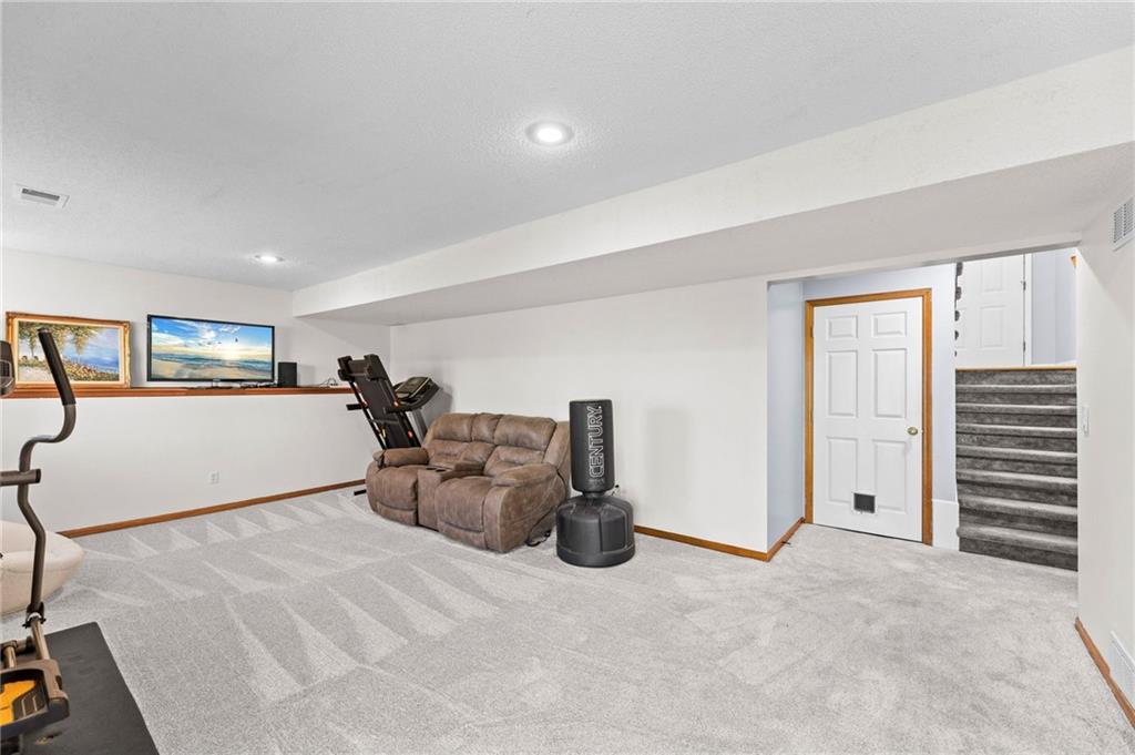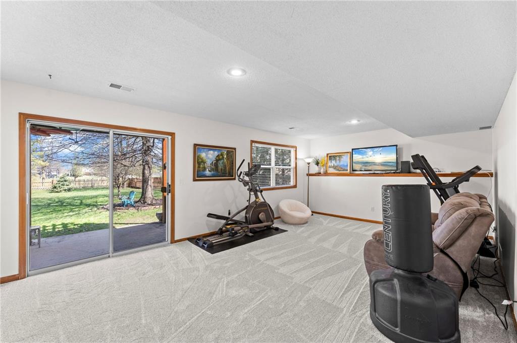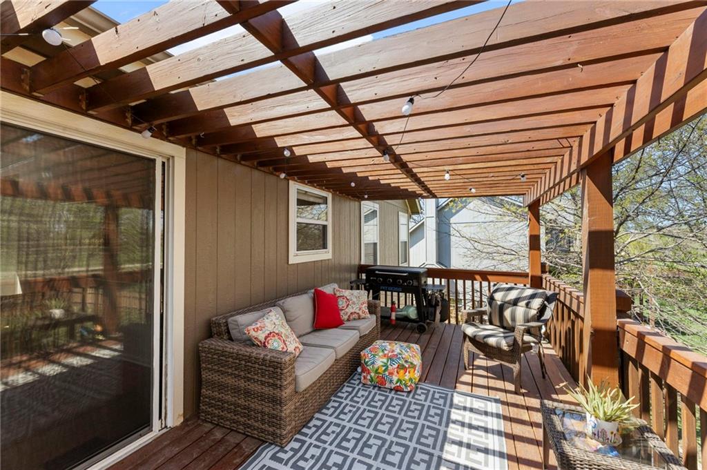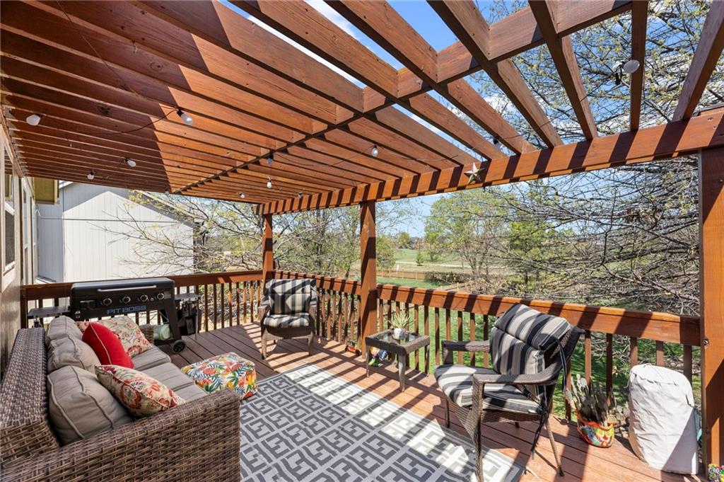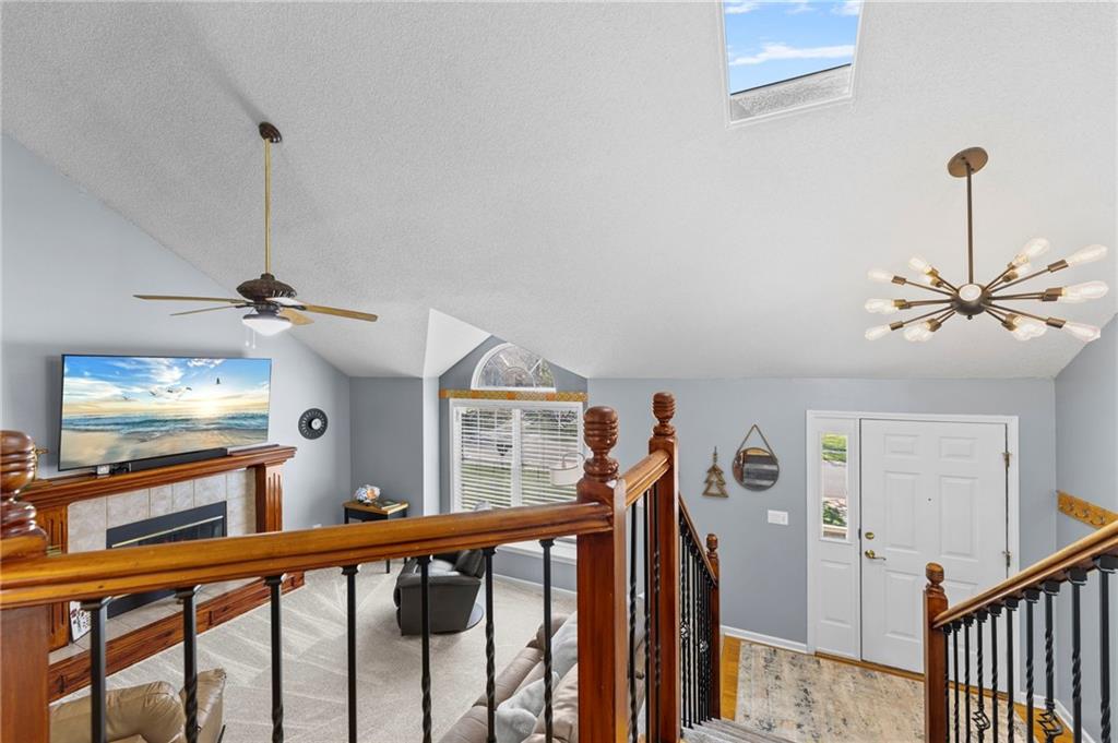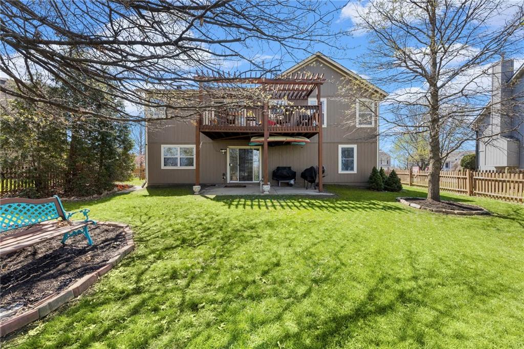 PRIME LOCATION! Located in a quiet cul-de-sac within the sought-after South Hampton subdivision, this meticulously cared-for, move-in-ready home backs directly to a scenic city park, trail system, and greenspace. The property is designed for modern ease, featuring permanent holiday and security lighting, Wi-Fi garage doors, and an array of smart switches and dimmers throughout. Inside, the light-filled living room features vaulted ceilings and smart window blinds. The wood-burning fireplace, with an available gas line, serves as the heart of the home and is complemented by an elevated dining area featuring elegant wainscoting and a pendant light. The updated kitchen has sleek quartz countertops, an undermount sink, and stainless-steel appliances, including a smart microwave. The primary suite is a true retreat with an architectural coffered ceiling, dual closets (including one walk-in), and a private ensuite bath featuring a dedicated makeup vanity and shower. The upper level also includes two charming secondary bedrooms with rustic accent walls and built-in shelving. On the lower level, you’ll find a conforming fourth bedroom that offers a private space for guests or a home office, with easy access to the adjacent full bathroom. The finished walkout basement flows right out to a patio and a fenced yard. Perfect for relaxing on the pergola covered upper deck while taking in the views of Hampton Park. Between the convenient lower-level laundry, large sub-basement and attached shed for storage, this home is designed to be as practical as it is beautiful.