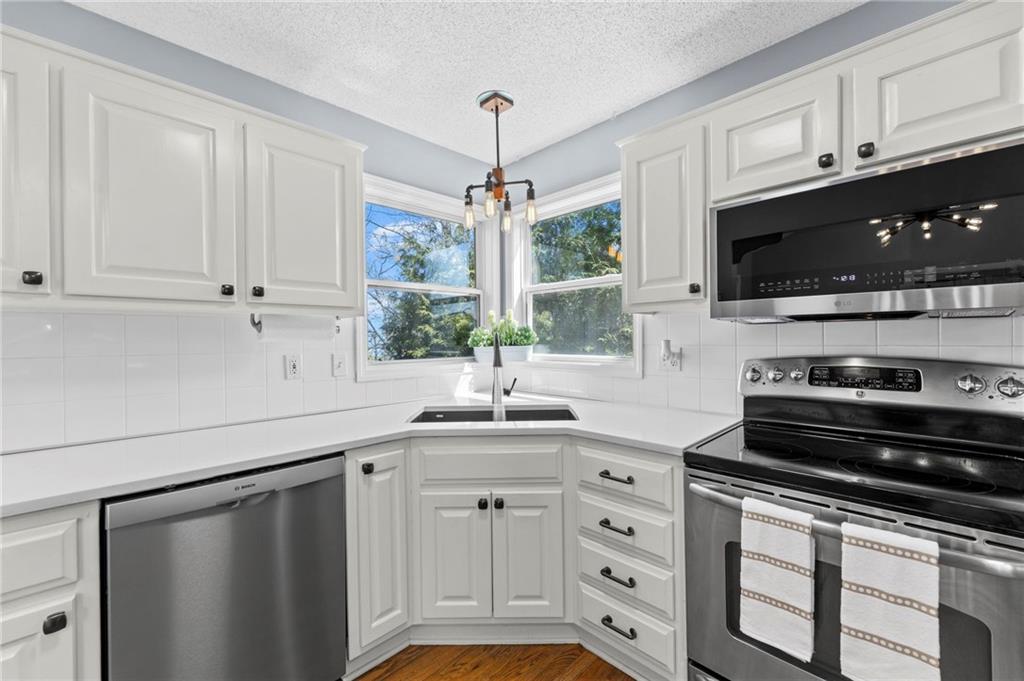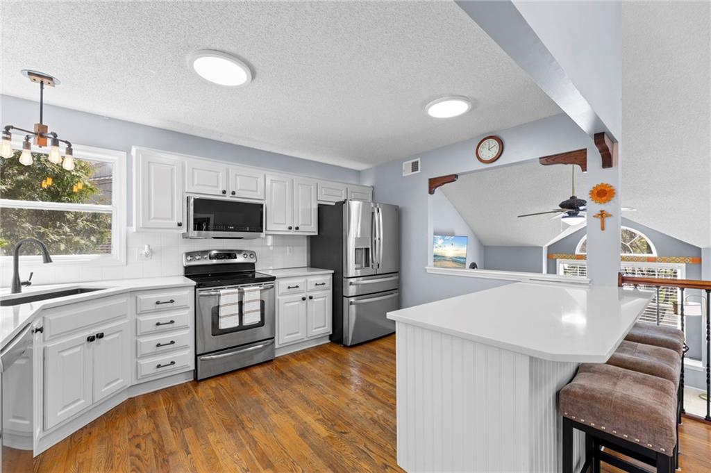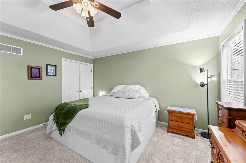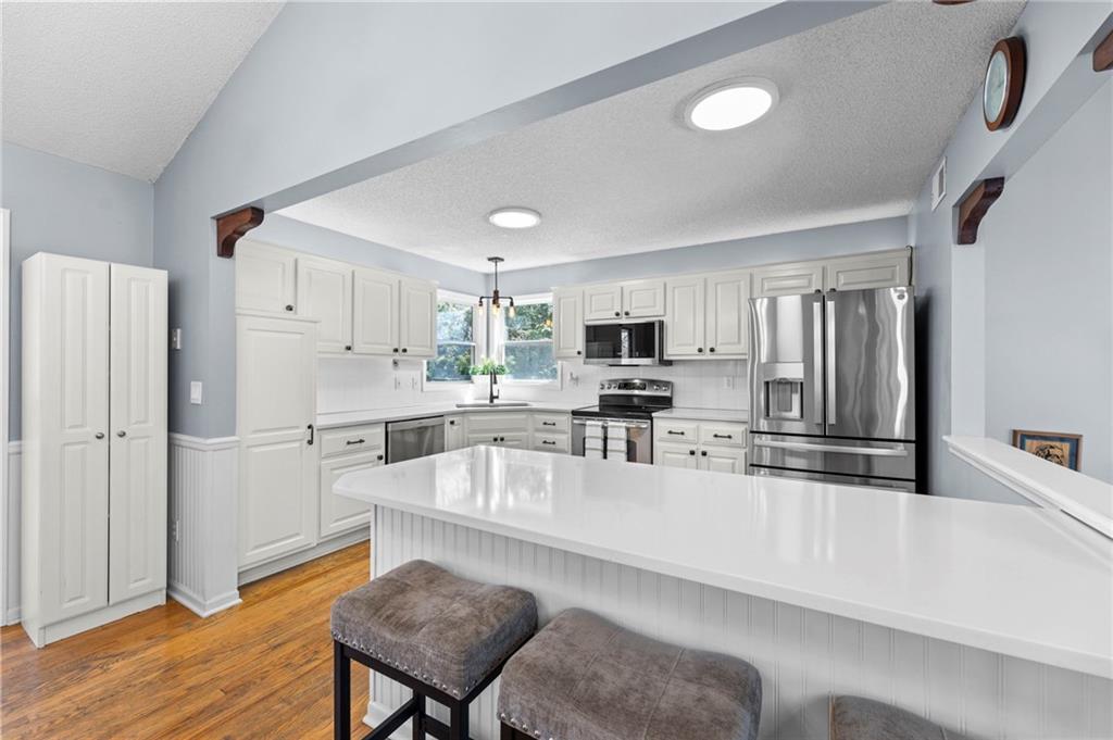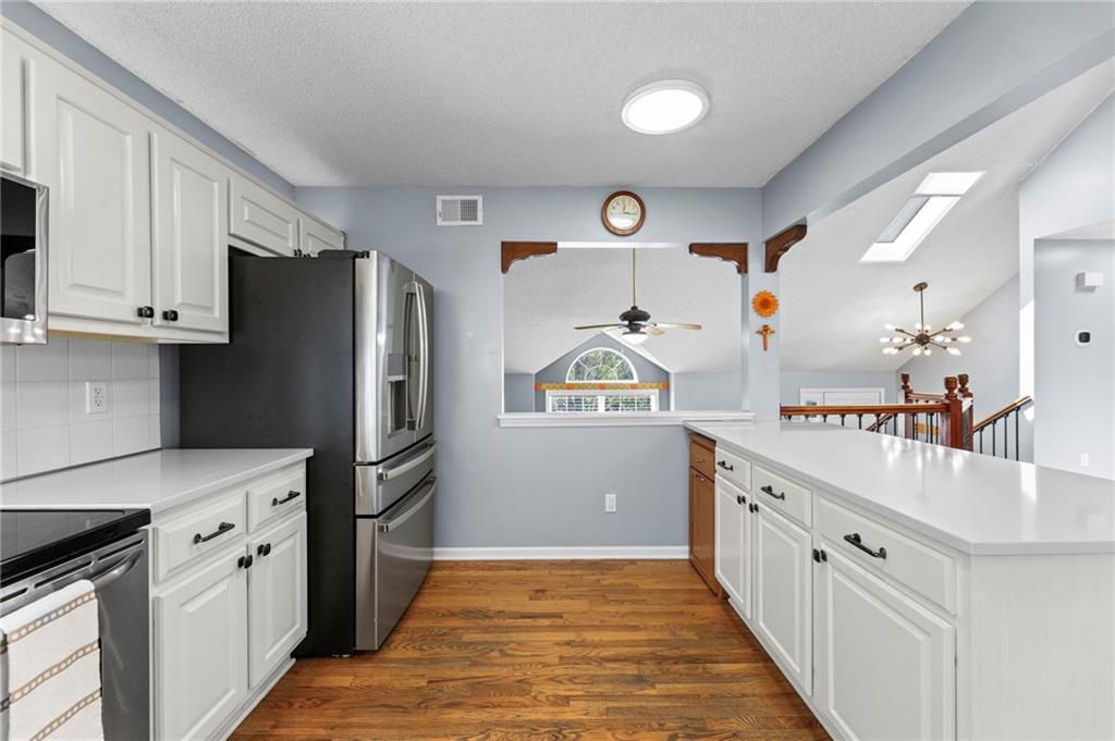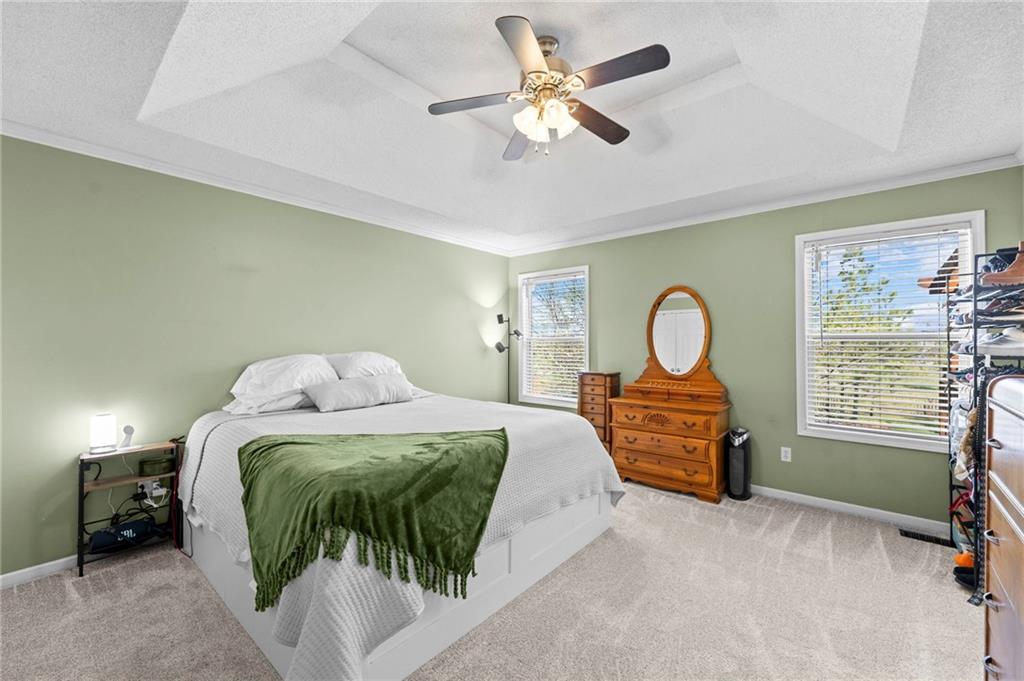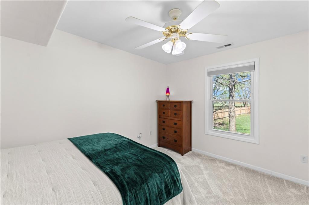 PRIME LOCATION! Located in a quiet cul-de-sac within the sought-after South Hampton subdivision, this meticulously cared-for, move-in-ready home backs directly to a scenic city park, trail system, and greenspace. The property is designed for modern ease, featuring permanent holiday and security lighting, Wi-Fi garage doors, and an array of smart switches and dimmers throughout. Inside, the light-filled living room features vaulted ceilings and smart window blinds. The wood-burning fireplace, with an available gas line, serves as the heart of the home and is complemented by an elevated dining area featuring elegant wainscoting and a pendant light. The updated kitchen has sleek quartz countertops, an undermount sink, and stainless-steel appliances, including a smart microwave. The primary suite is a true retreat with an architectural coffered ceiling, dual closets (including one walk-in), and a private ensuite bath featuring a dedicated makeup vanity and shower. The upper level also includes two charming secondary bedrooms with rustic accent walls and built-in shelving. On the lower level, you’ll find a conforming fourth bedroom that offers a private space for guests or a home office, with easy access to the adjacent full bathroom. The finished walkout basement flows right out to a patio and a fenced yard. Perfect for relaxing on the pergola covered upper deck while taking in the views of Hampton Park. Between the convenient lower-level laundry, large sub-basement and attached shed for storage, this home is designed to be as practical as it is beautiful.