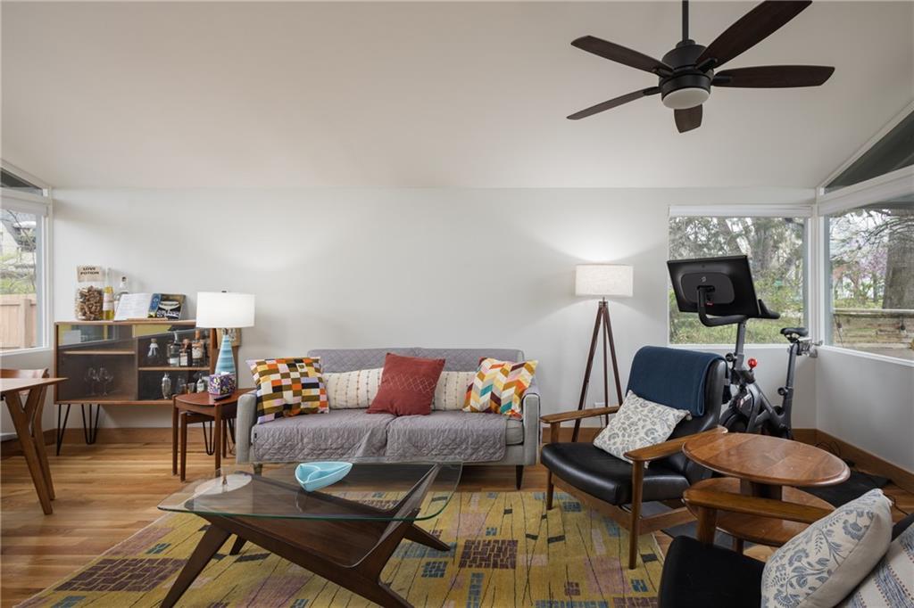 “The Apex” — a stunning Mid-Century Modern retreat, thoughtfully restored to celebrate its original character while embracing modern living. This architectural gem features dramatic vaulted ceilings and expansive floor-to-ceiling windows that flood the home with natural light and seamlessly connect indoor and outdoor spaces. A striking loft overlooks the main living area, adding both visual interest and functional flexibility—perfect for a home office, studio, or reading retreat. Every detail reflects the clean lines and timeless appeal that define true Mid-Century design. Step outside to discover a rare bonus: a 400-square-foot workshop in the backyard, designed to echo the home’s architectural style. Whether you’re a creator, hobbyist, or simply need extra space, this detached structure offers endless possibilities. “The Apex” is more than a home—it’s a statement piece, blending iconic design with everyday livability.
