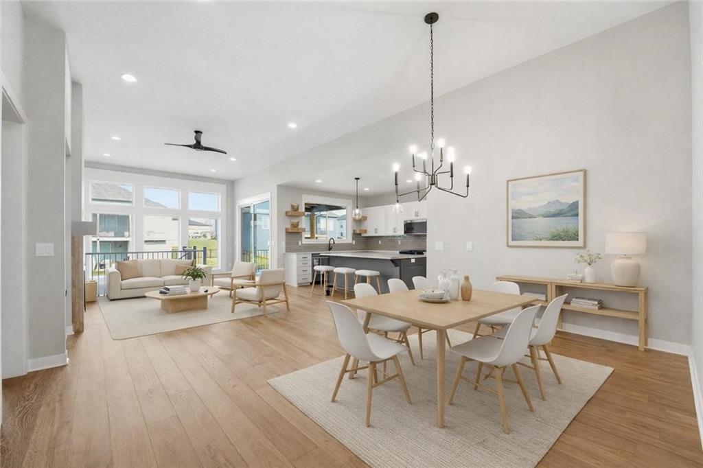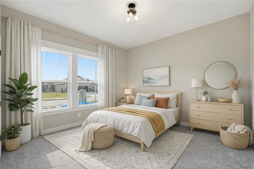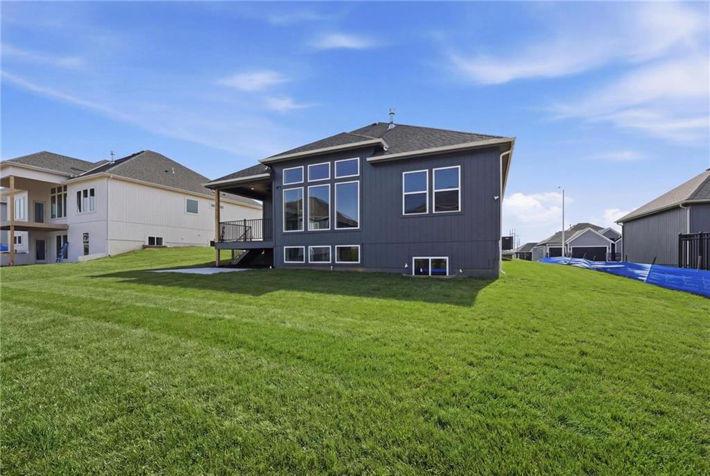 Experience refined main-level living in The Truman by Patriot Homes, located in The Reserve at Riverstone community. This move-in ready new construction home blends timeless design with elevated luxury details, offering the ease of living without sacrificing space or style. Step through the impressive 8-foot front door into a light-filled entry with soaring 12 foot ceilings, elegant trim work, and a striking chandelier that immediately sets the tone. Hardwood flooring flows through the main living areas, creating seamless connection between the dining space, designer kitchen, and inviting great room perfect for both everyday comfort and effortless entertaining. The kitchen is truly the heart of the home, featuring expansive quartz countertops, a large center island, custom shaker-style cabinetry, and stainless-steel Samsung appliances. The adjoining great room offers a warm yet sophisticated atmosphere with a gas fireplace, built-in bookshelves, floor-to-ceiling windows, and an 8-foot sliding glass door opening to a covered composite deck. A private hallway leads to a luxurious main-level primary suite designed for relaxation, complete with a freestanding soaking tub, zero-entry walk-in shower, Bluetooth audio, and a spacious walk-in closet with thoughtful storage features. A secondary main-level bedroom and full bath provide flexibility for guests, office space, or additional living needs. The finished daylight lower level expands your living and entertaining options with a generous family room filled with natural light, two additional bedrooms, a full bath, and two unfinished areas offering exceptional storage or future customization possibilities. Additional highlights include a three-car garage with 8-foot doors, irrigation system, high-efficiency 96% Lennox furnace, whole-house humidifier, and 50-gallon electric water heater — all reflecting the unmatched quality and craftsmanship Patriot Homes are known for.