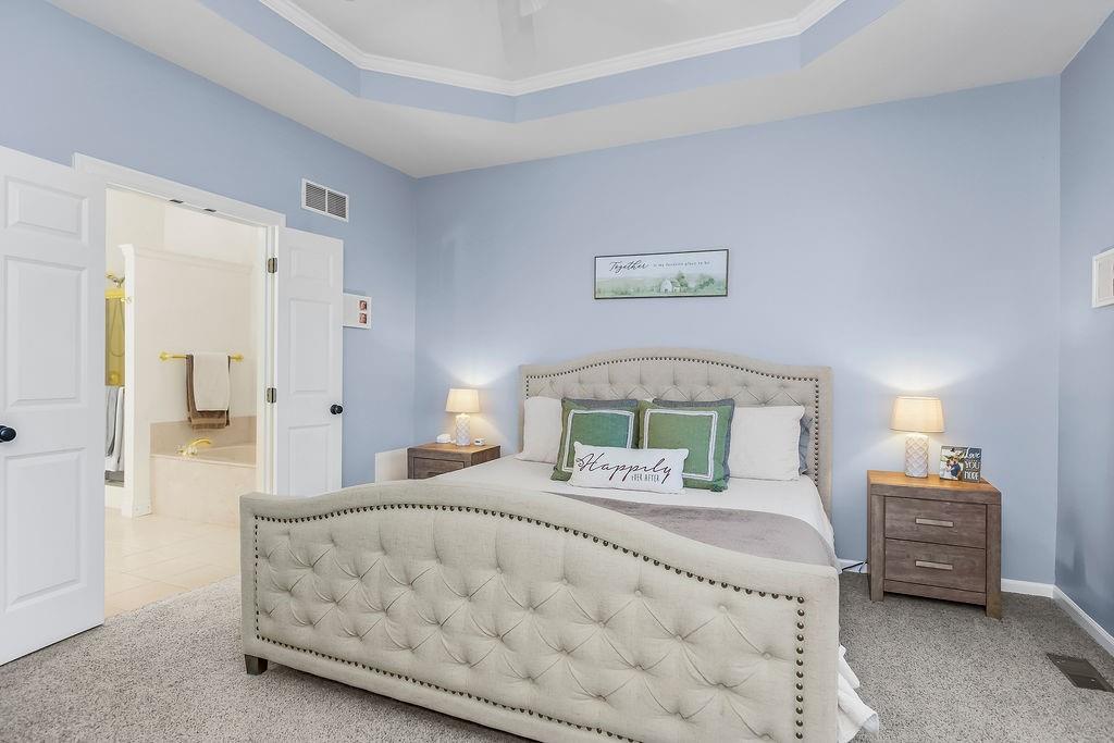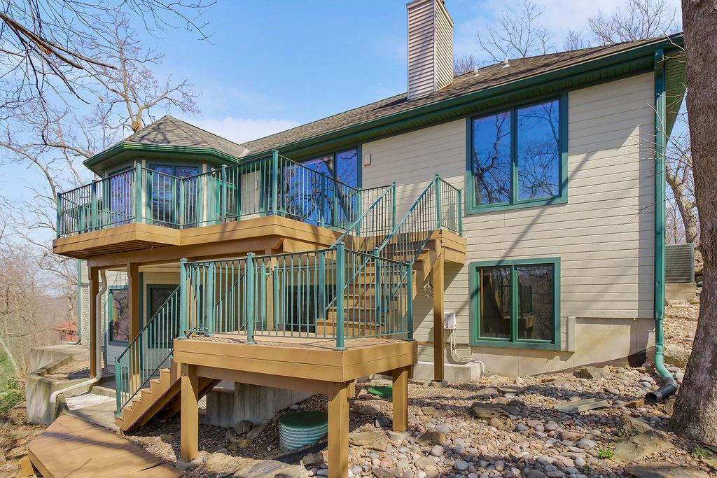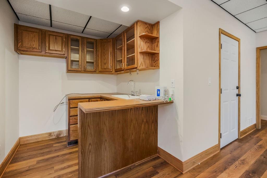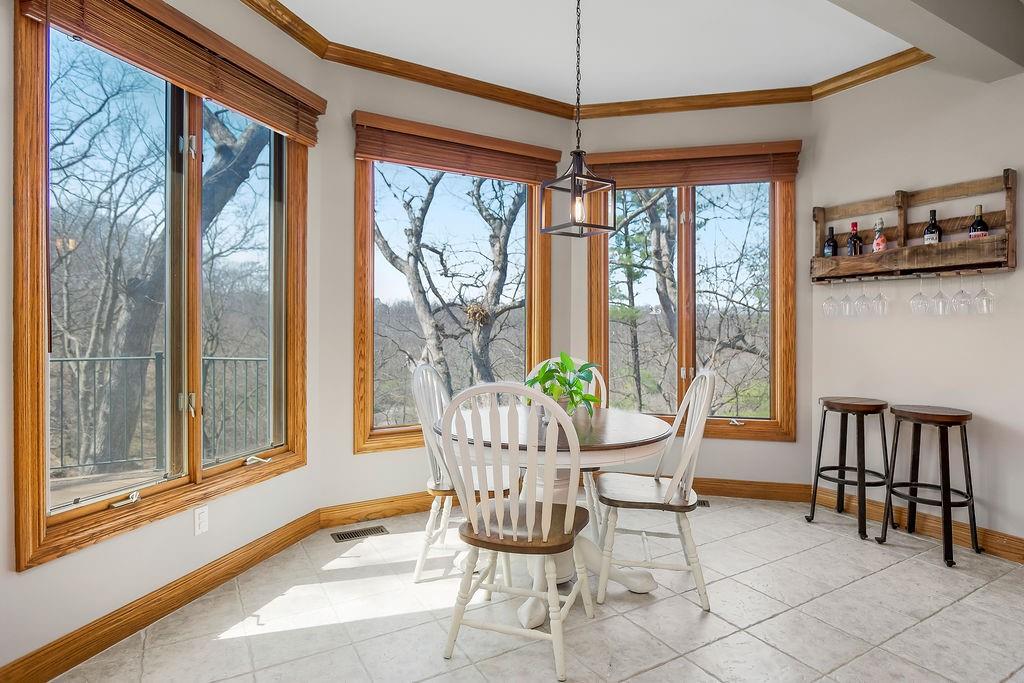 Beautiful reverse 1.5-story home located in the desirable Black Swan Estates community. This 3-bedroom, 3 full bath home features a fully finished walkout lower level complete with a wet bar and private guest suite—perfect for entertaining or extended stays. Beautiful primary bedroom plus 2nd bedroom on main floor. Wide open main floor with huge island kitchen overlooking great room. Bonus sunroom off the kitchen would be a great playroom or office! Enjoy abundant storage throughout and easy access to the suspended garage, ideal for a workshop or hobby space. There are steps from main garage to the lower level workshop area. Bonus storage room off the basement. Step out onto the deck overlooking a private, wooded lot—perfect for relaxing or enjoying nature. Nestled in a quiet neighborhood with lake access and a community pool, this home offers both privacy and charm. Great location close to downtown Shawnee, with easy access to shops, restaurants, and everyday conveniences!
